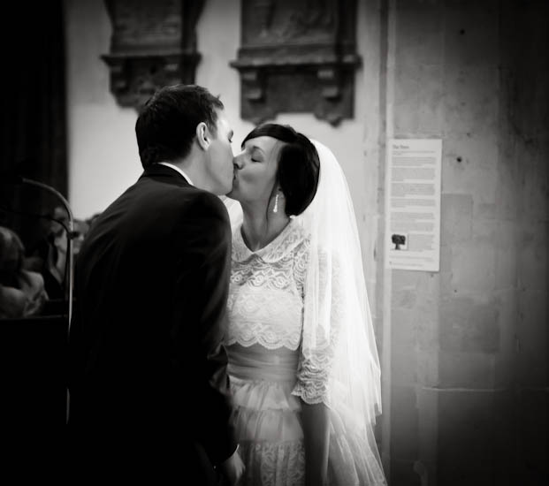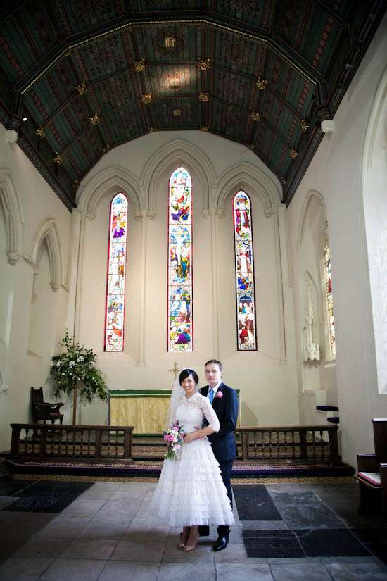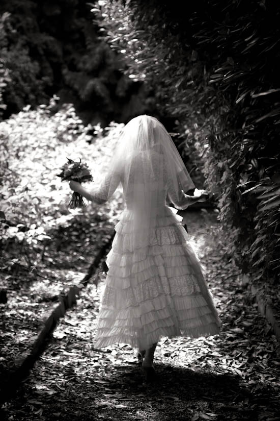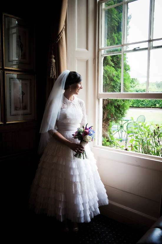 Jo wore a vintage wedding dress from 1954 which she bought from Elizabeth Avey in London. She also added vintage jewellery from Lovely & Vintage and Ted Baker shoes.