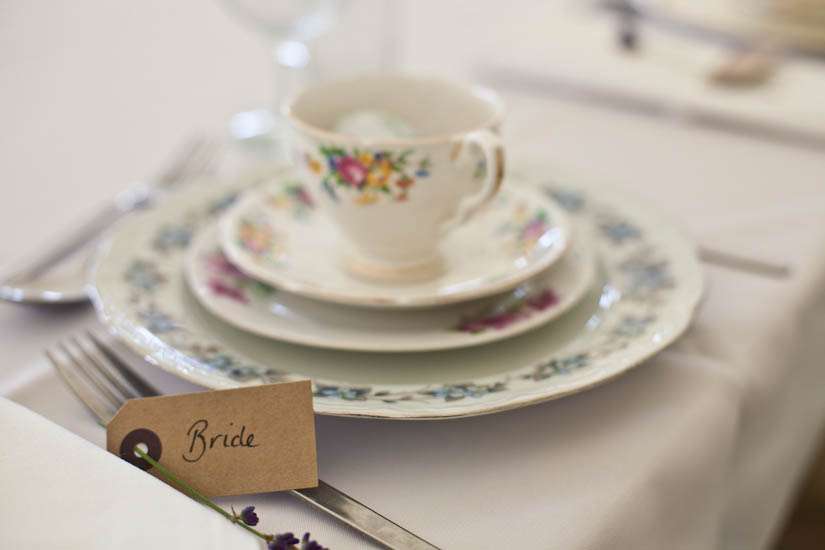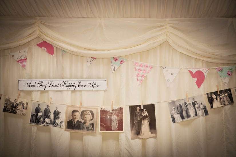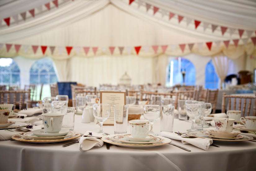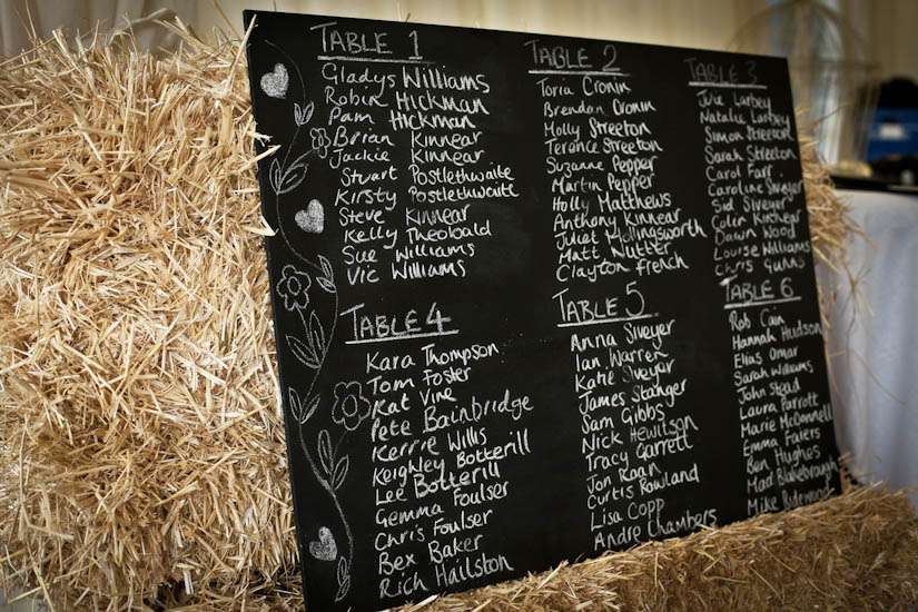“We didn’t want a ‘theme’ as I don’t like things that match but the village fete idea with the games, sweetie table and the hay bales etc grew as we started to put everything together. We did almost everything we could ourselves which was great but did mean late nights making orders of services, invitations place cards, menus etc. The night before the wedding Charlie and his best men were at the marquee until 10pm and I was up with my bridesmaid) finishing the Pimms flags (of us and our two dogs) until gone midnight!”