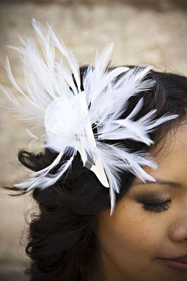 Chrissie wore a short gown made by Jeff Dark Art and a headpiece handmade by her groom.