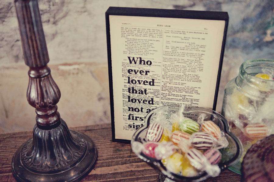 “I used websites like Rock n Roll Bride and many, many (OK, hundreds of) wedding blogs for ideas and inspiration. We have quite a taste for old vintage things and are constantly rummaging around in markets so used these trips for inspiration on how to display things or what to buy. Things like the idea of covering books with vintage-style wrapping paper for the centrepieces we got from passing an antique shop in Chelsea, for example.”