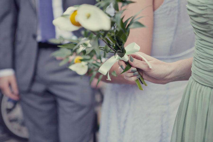 “We spent weeks to-ing and fro-ing all the vintage bookstores on Charing Cross Road (they do great bargain deals like hardback books for a pound). I sourced a template for library card sleeves online, used an embossed gold paper to make them and then slotted our wedding invites inside to complete the book. As much as possible, we tied our book choices to our guests’ interests, e.g. a Portuguese travel guide for my Mum, classic English poems for friends who studied literature with us, and a Guide to British Birds for Phil’s old-charmer Dad. I love the idea that the invites had a life after the wedding, and it’s great knowing that they’re sitting on our friends’ bookshelves as part of their collection.”