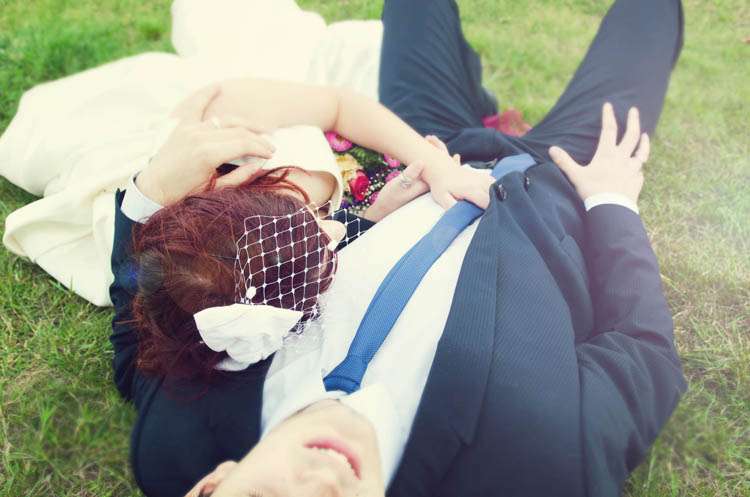 The bride wore a short dress by Honeypie Boutique, shoes from New Look and a veil by Field and Fallow.