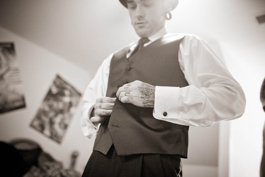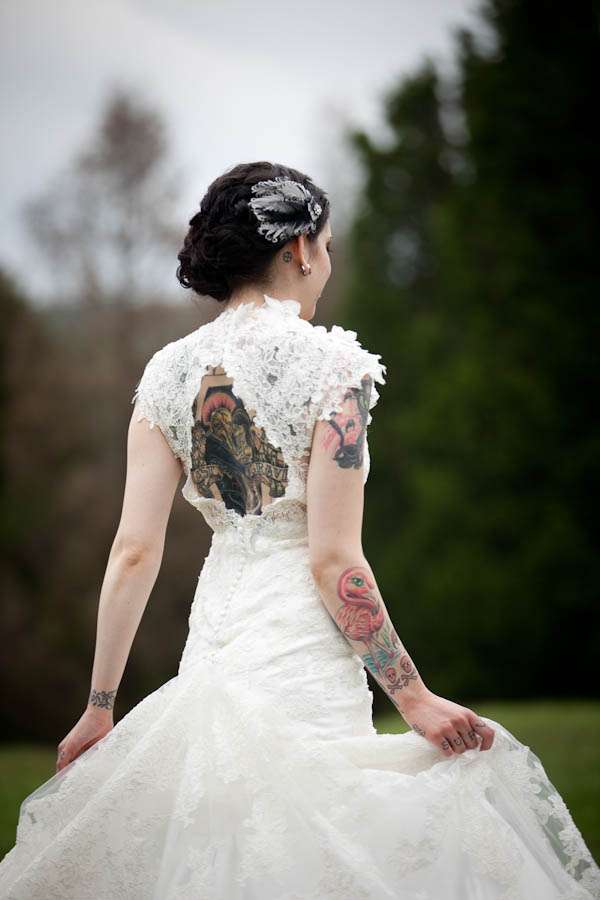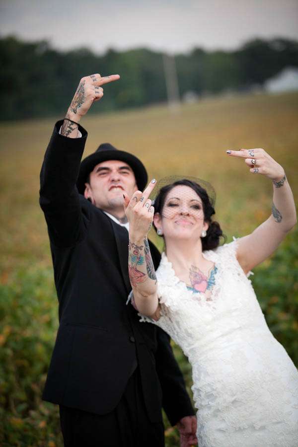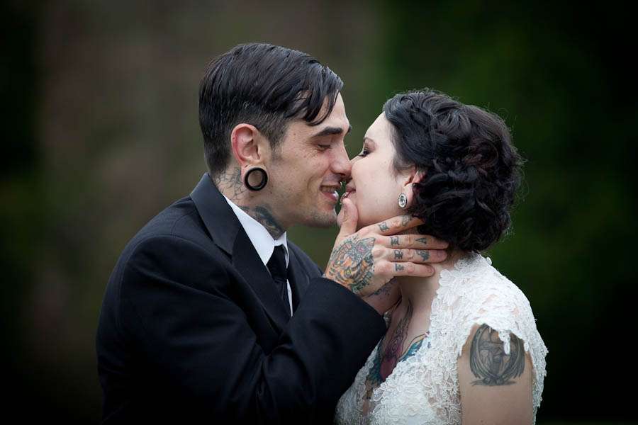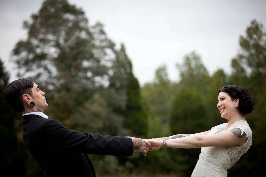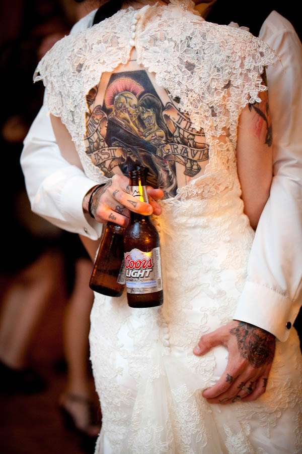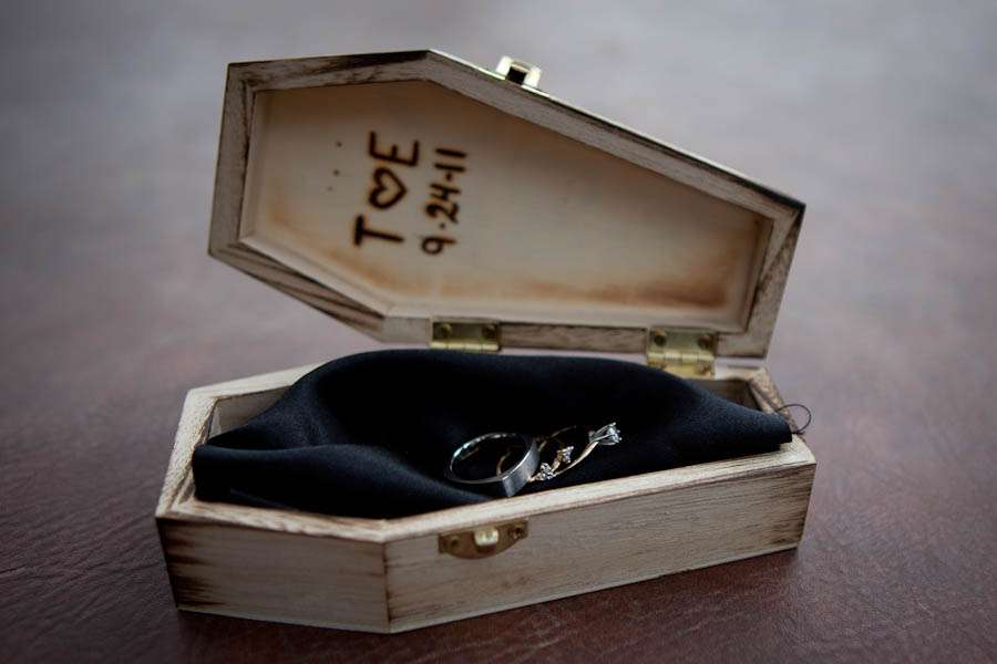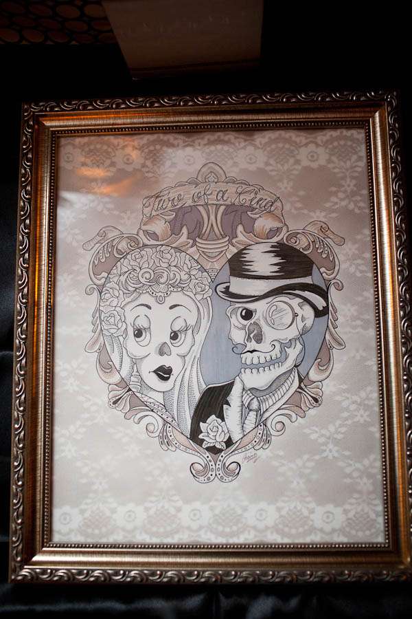 “Our inspiration basically just came from our relationship. We took things we love in our every day lives and tried to figure out how to incorporate them into our wedding. We wanted a vintage feel but wanted it to be a little on the darker side.”