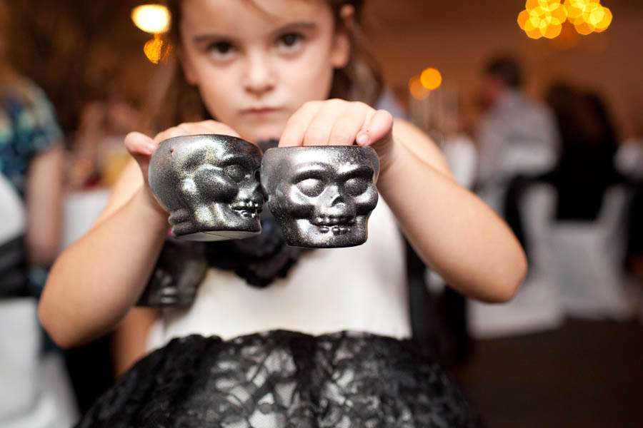 “We talked with decorators and looked elsewhere but nothing we saw really fit our style, plus the prices were outrageous. Instead Jason took matters in to his own hands. He definitely is the Martha Stewart of our group. I couldn’t have asked for anything better. Our favors started out as cheap looking little plastic skull pails and I revamped them with a bit of paint.”