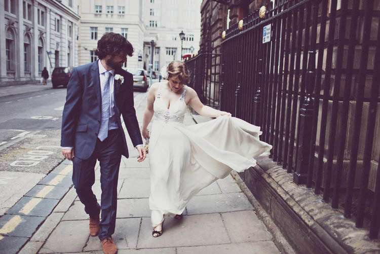 After a ceremony at The Cotton Exchange, Liverpool came the reception at The Racquet Club. “Both John and I live in Guernsey in the Channel Islands but John went to University in Liverpool and we both lived there for nearly 4 years after he finished” the bride explained. “Liverpool is really in our hearts – we love it and go back as often as we can. There was no venue in Guernsey both within our budget and that was quirky enough. The Racquet Club was perfect – its really quirky and is beautiful in itself without needing huge amounts of decoration.”