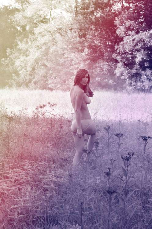 “We started the day out in my car jamming The Doors which inspired a heated discussion about how hot Jim Morrison was. After about a 20 minute ride we arrived at the location I picked out for the shoot, a field of wild flowers in KY, my favorite place to be. Here we were, on a long gravel road in the middle of nowhere, clothes and cameras everywhere, Casey half naked and here come the police! You should have seen the look on their faces, priceless. Thanks to Casey’s power of seduction they were super cool about letting us stay and shoot. How could they say no, right?”