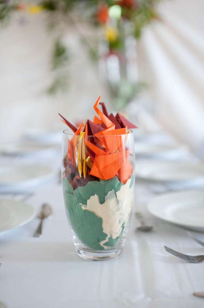 “The majority of the wedding was DIY. The bride’s parents folded 1000 origami cranes that was used as decor; board games and lawn games for the guests; no first dance/bouquet toss/garter toss/other ‘traditional’ elements to the reception – just a lot of happy talking and food. It was a daytime wedding and ended when the sun set.”