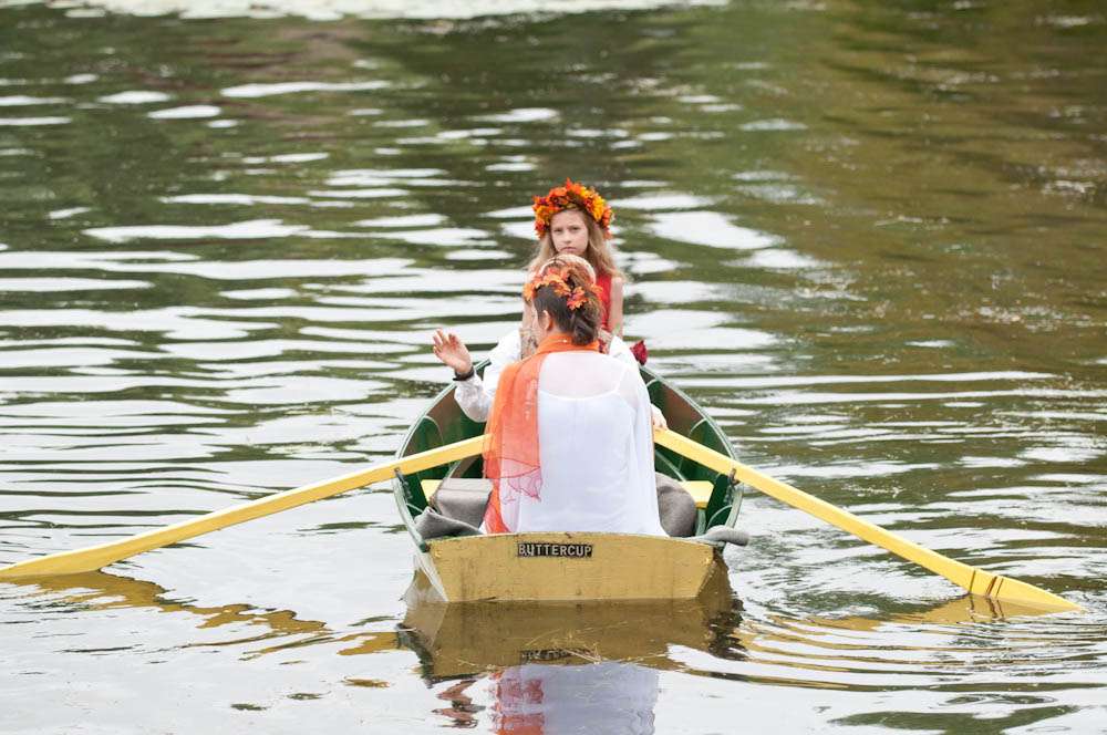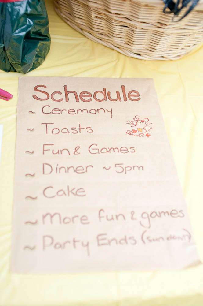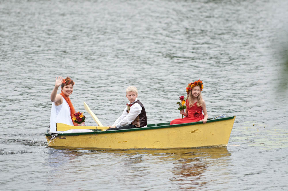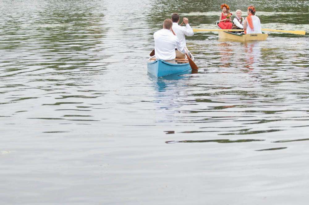 “The bride and groom were officially married (i.e. they signed the paperwork) early that morning in front of their parents while drinking their morning coffee,” photographer Elissa told me. “That afternoon, they went for a ceremonial paddle around the lake at the start of the wedding ceremony, and after their hand-fasting ceremony they served their guests champagne and went for another paddle.”