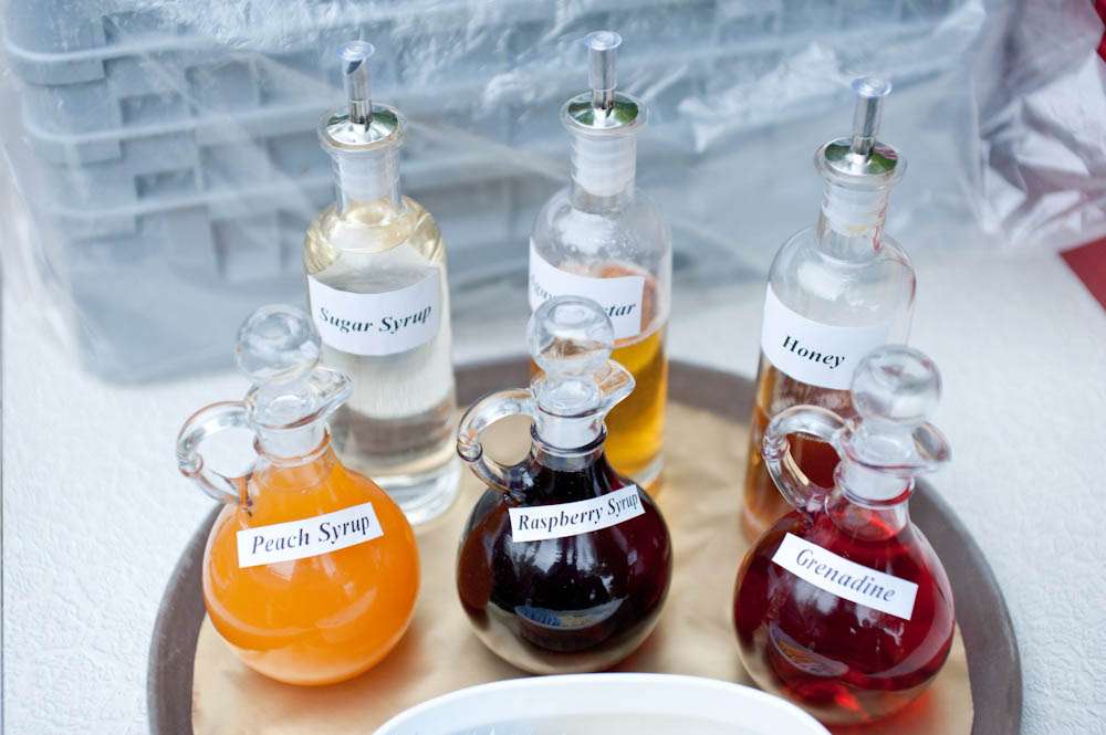 “The groom’s sister also experimented with lemonade recipes all summer and picked 6 custom lemonade flavors for the reception including lavender lemonade, spicy rosemary lemonade, and ginger limeade.”