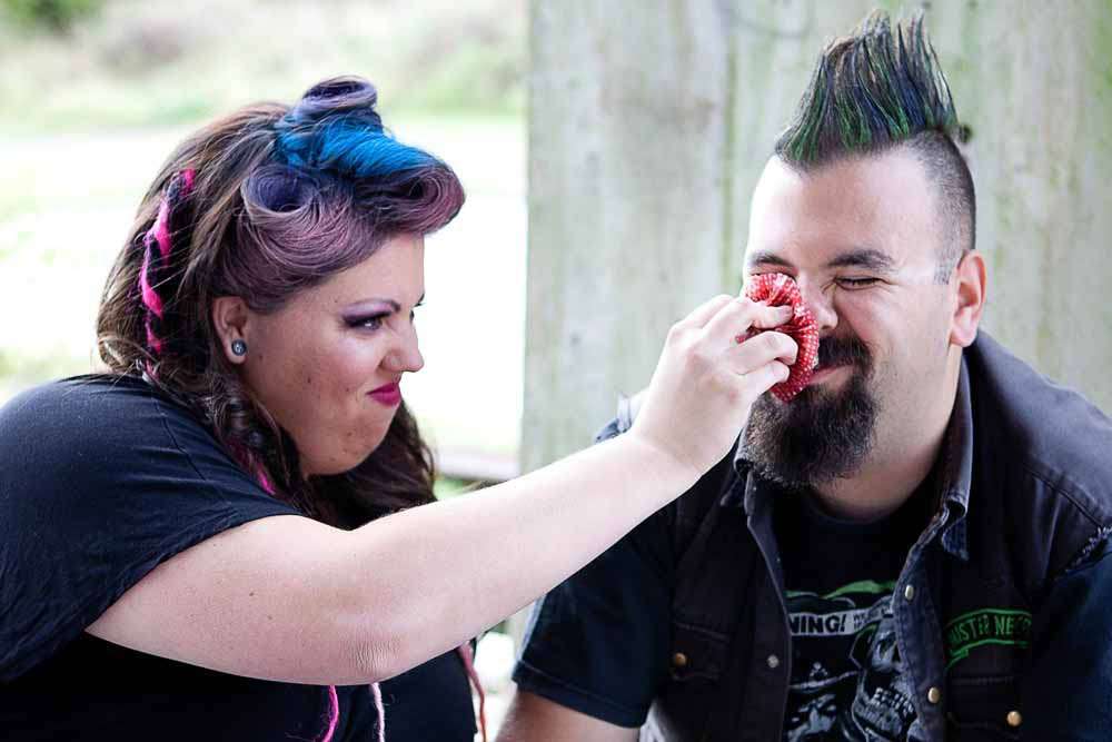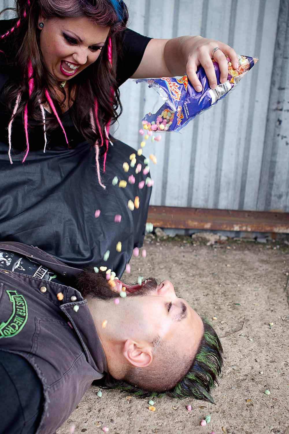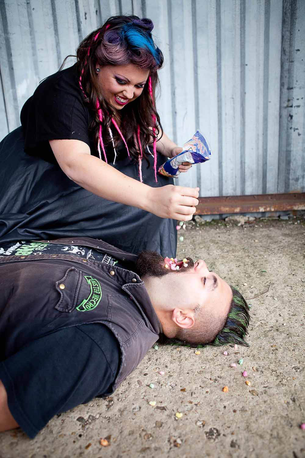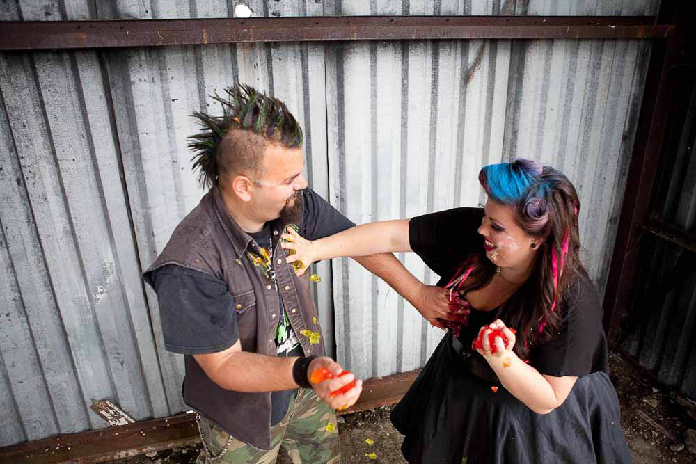 “We got engaged on 1st April 2011, yes you heard right, April Fool’s Day, and with this in mind we would like to continue our personalities and character traits in an engagement shoot. The theme I see is a food fight, with bright and colourful food such as cupcakes, hotdogs, condiments (almost American food style) between myself and my fiancé.”