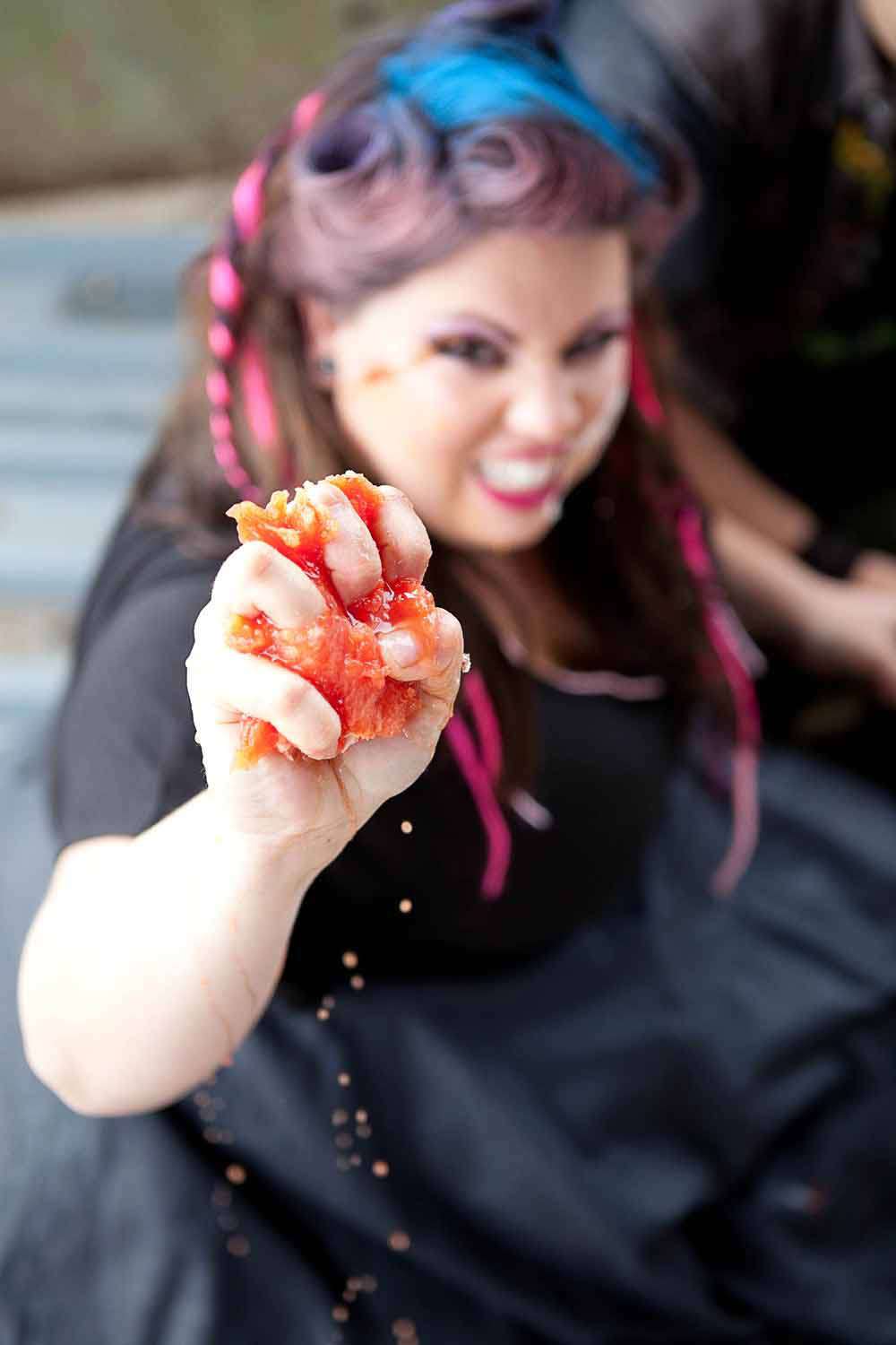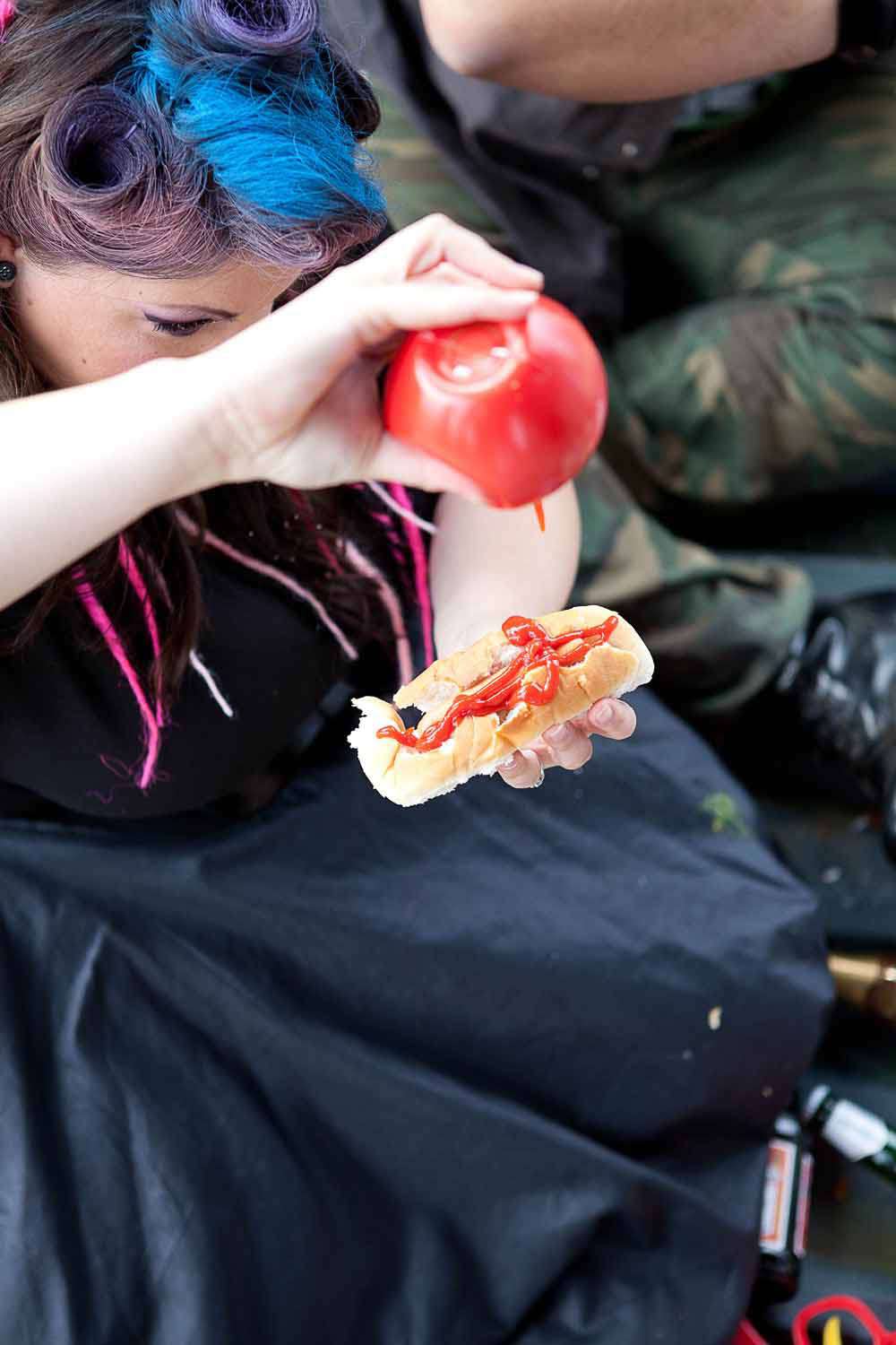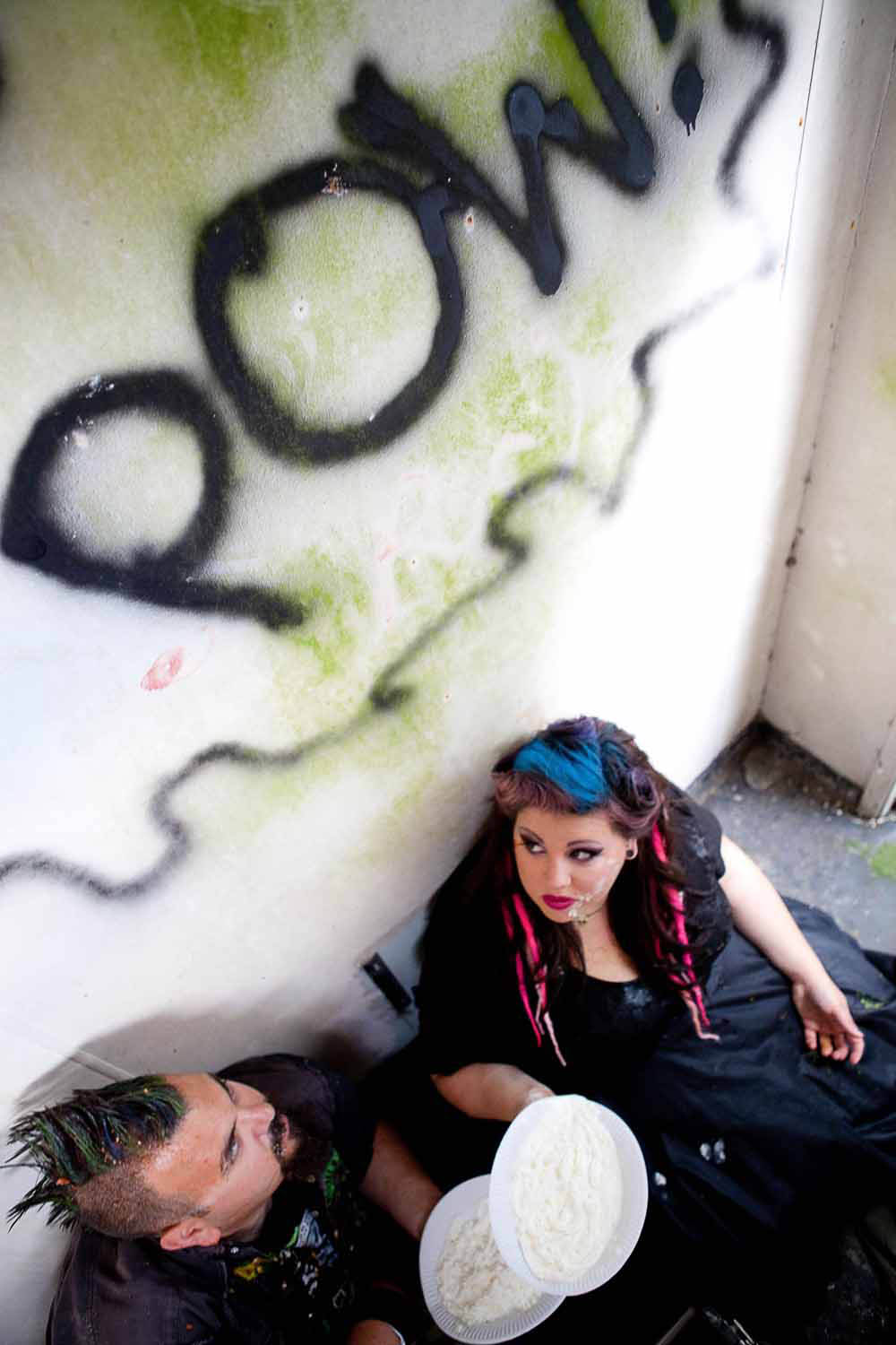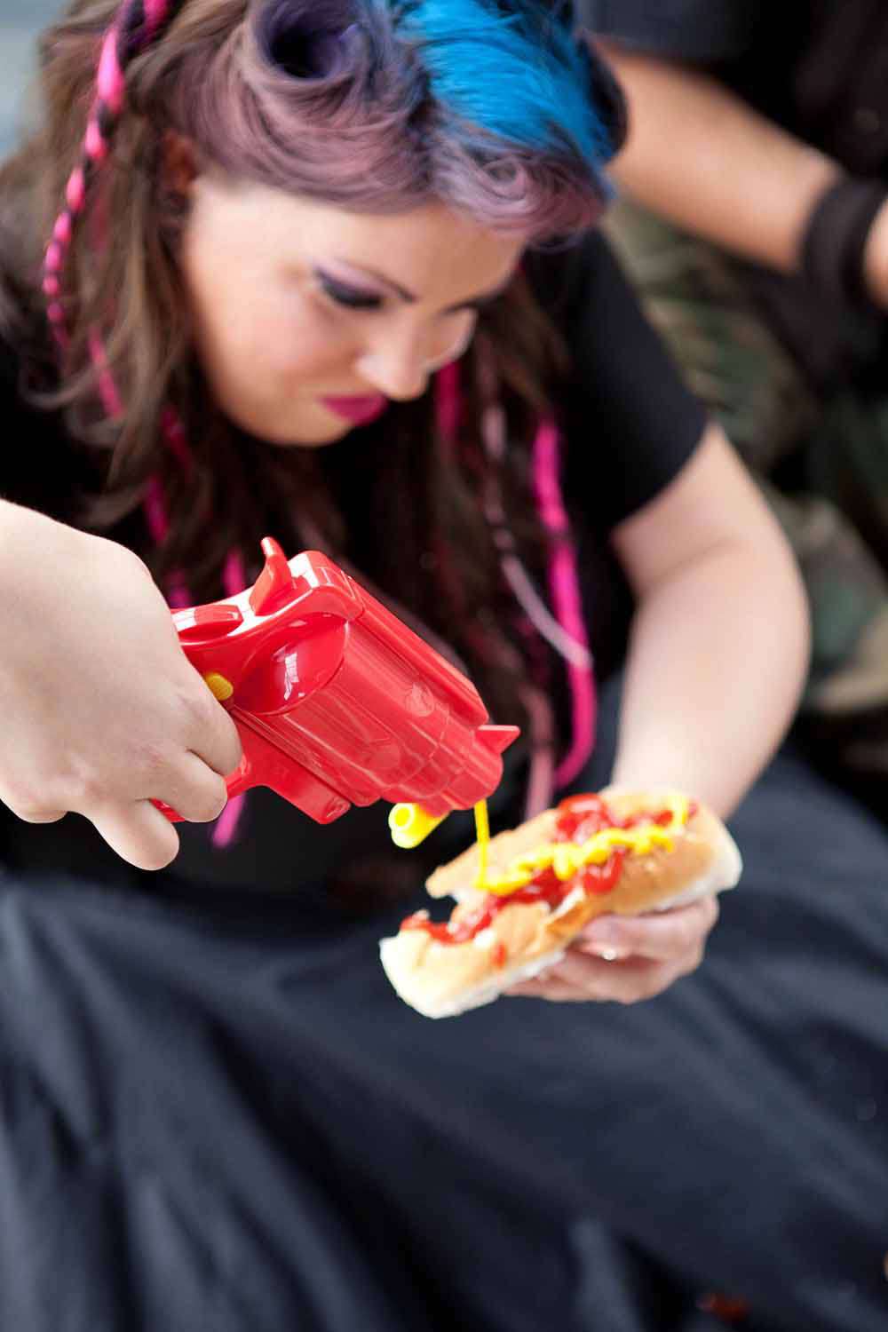 “We got engaged on 1st April 2011, yes you heard right, April Fool’s Day, and with this in mind we would like to continue our personalities and character traits in an engagement shoot. The theme I see is a food fight, with bright and colourful food such as cupcakes, hotdogs, condiments (almost American food style) between myself and my fiancé.”
