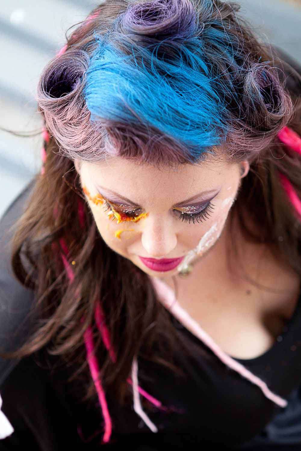 “We could be dressed in black so the bright colours would show up. I’d like some bright colour extensions in my hair (it’s brown at the moment) and bright make up to create a bold look.”