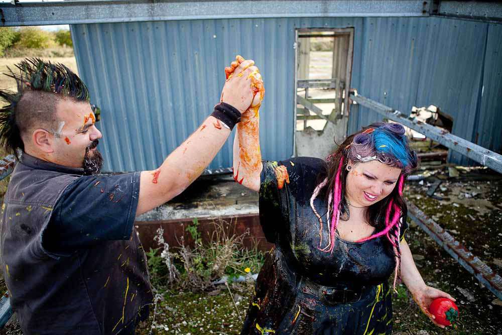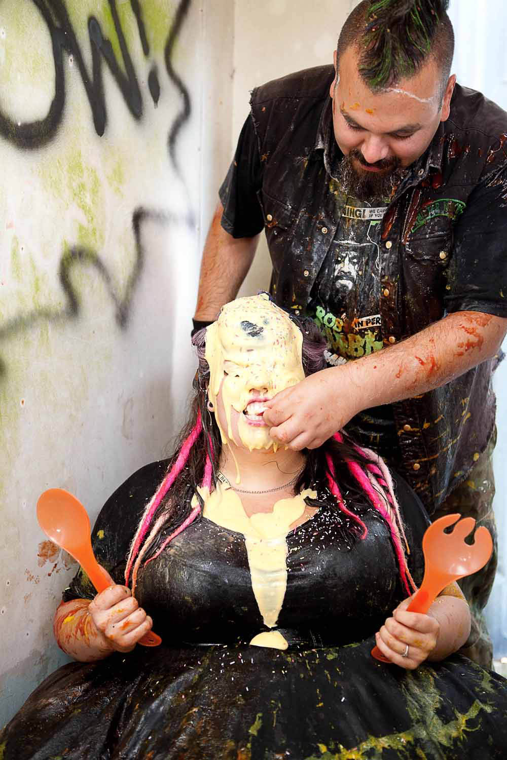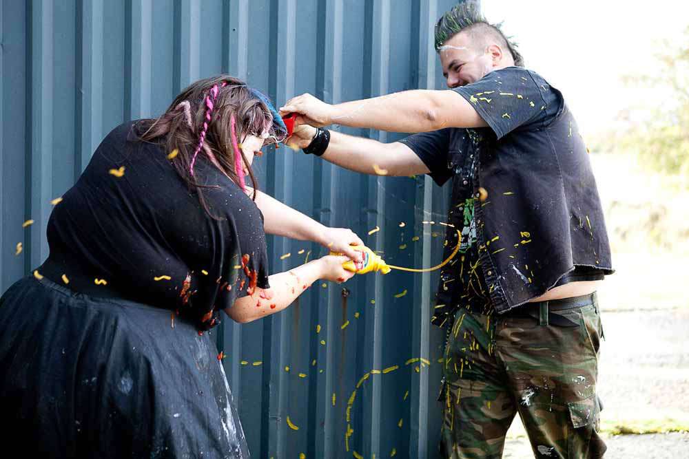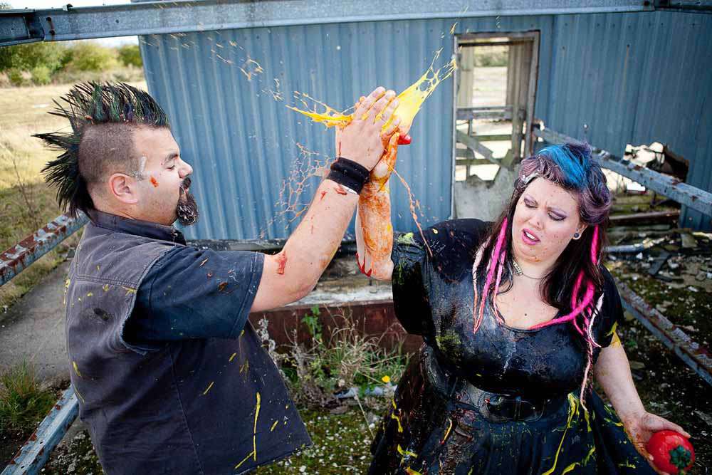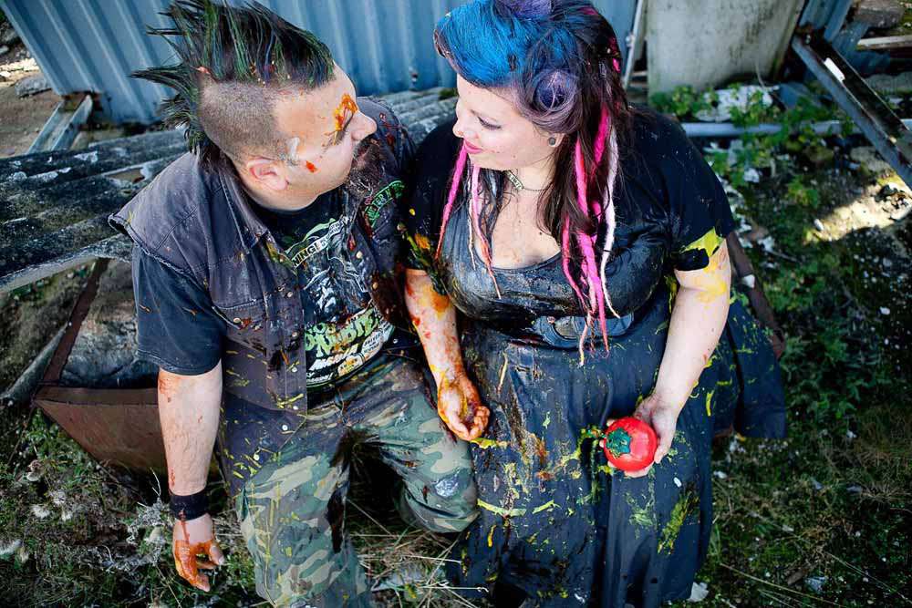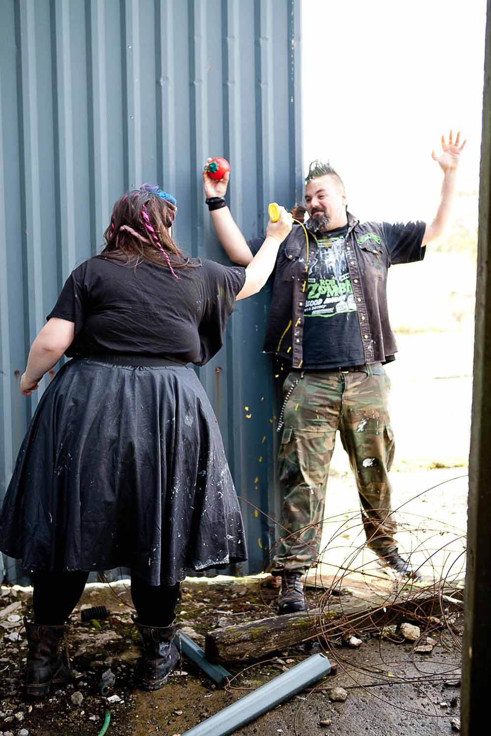 Kim & Phil were the lucky couple who won an engagement and video shoot with Assassynation, Sassy n Frank and Elbie Van Eeden. Their idea for a crazy shoot was a food fight as Kim explained in her entry,