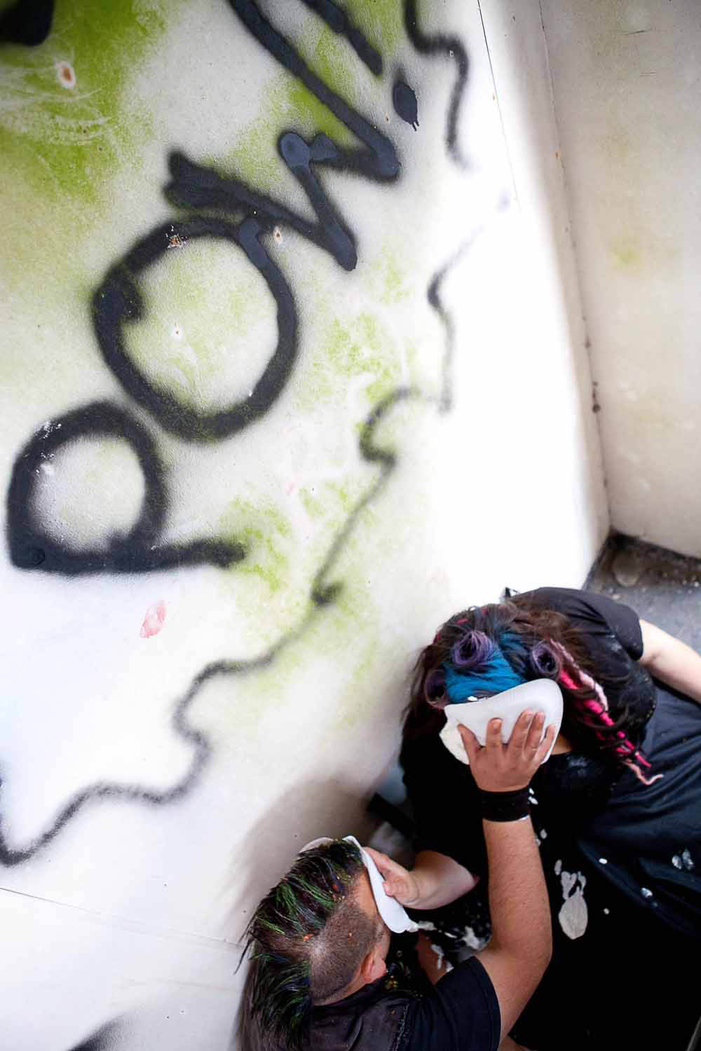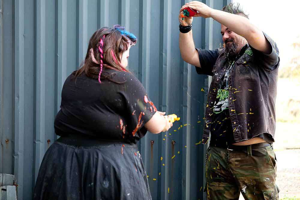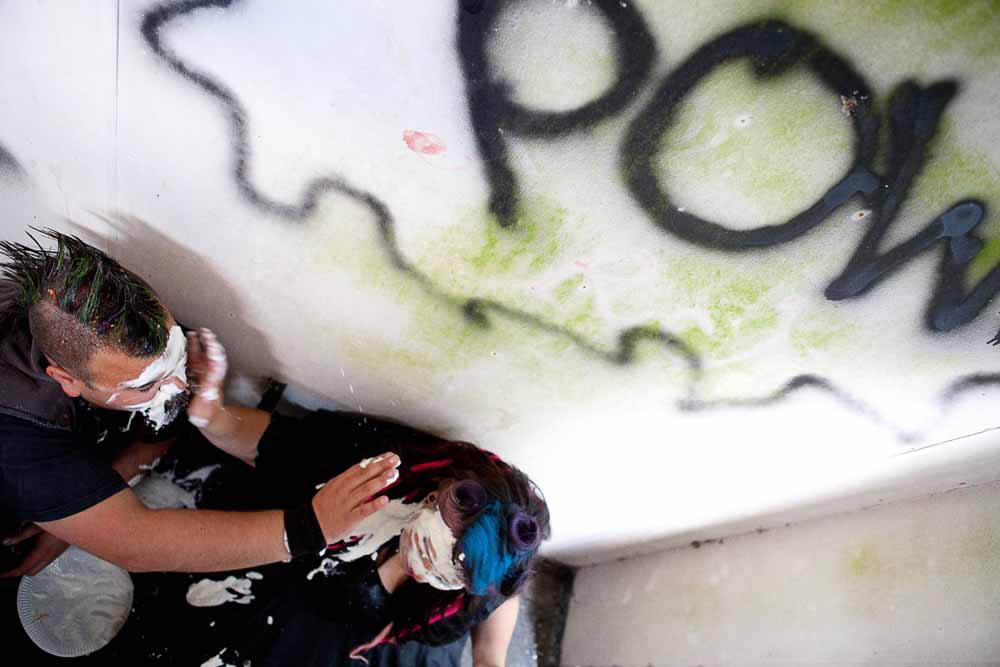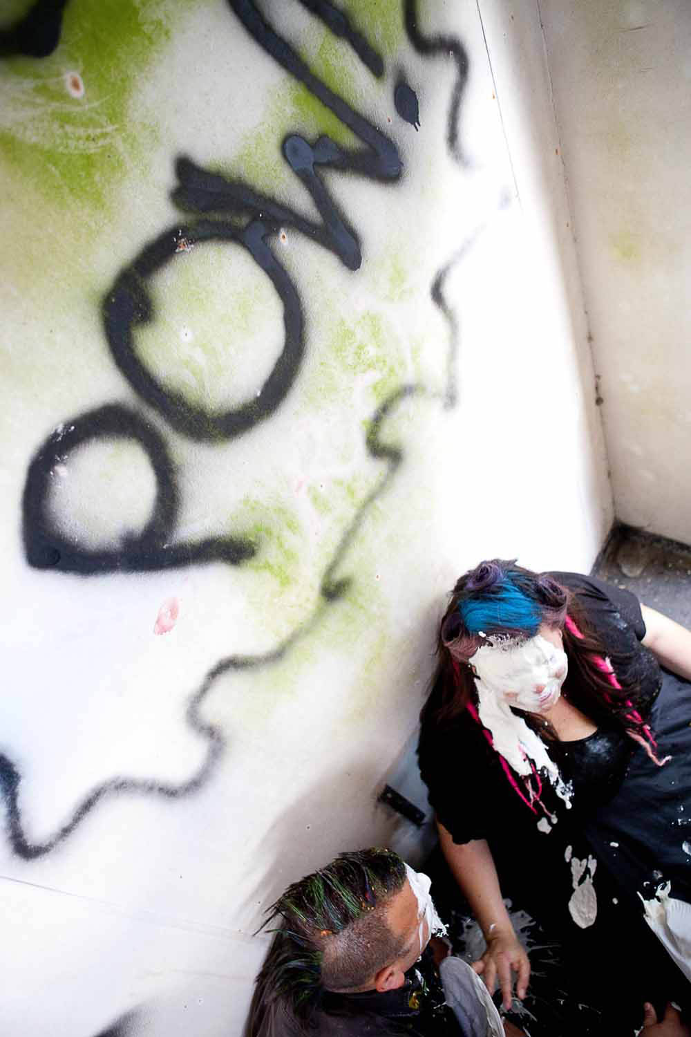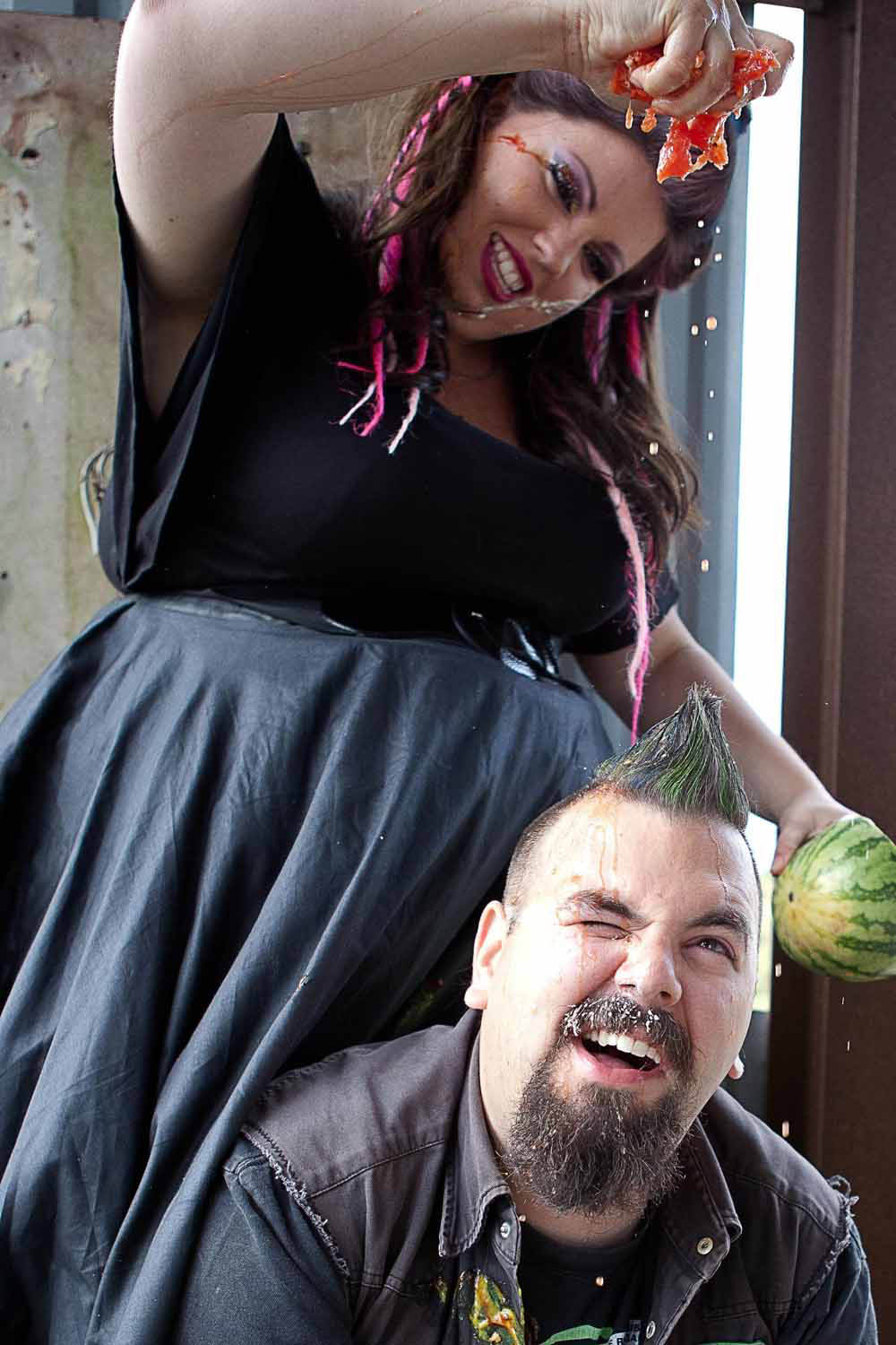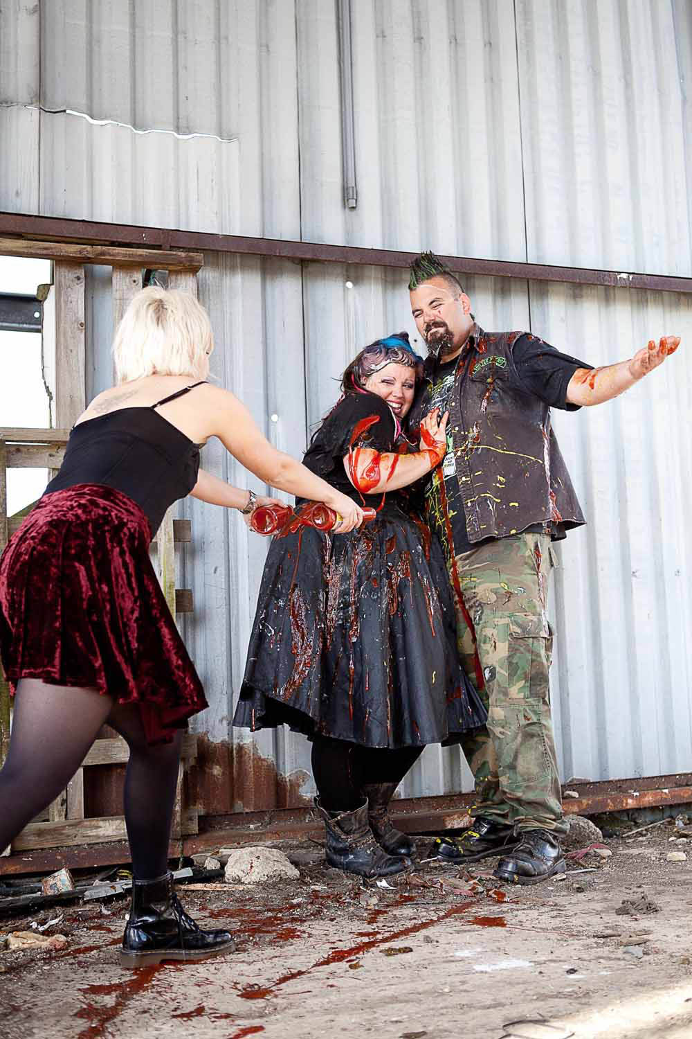 Kim & Phil were the lucky couple who won an engagement and video shoot with Assassynation, Sassy n Frank and Elbie Van Eeden. Their idea for a crazy shoot was a food fight as Kim explained in her entry,
