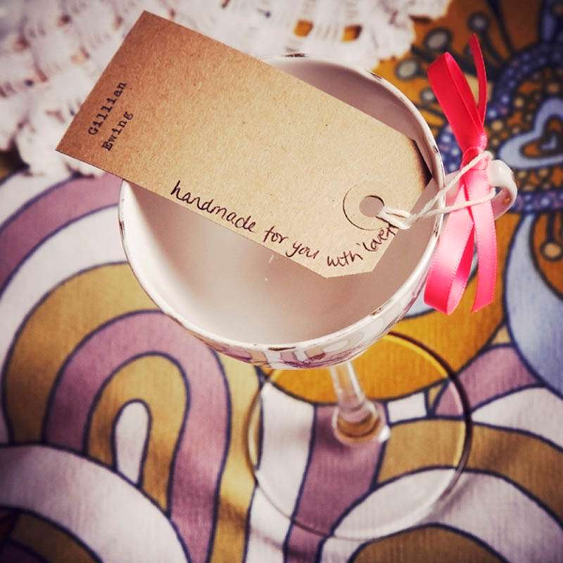 “The bride made all the ‘winecup’ favours herself, a wineglass stem with a teacup on top. The women guests (and some men) were in awe and the race was on to ensure they all got to take one home. The pewter tankards were a massive success, again collected from car boots, family and friends. It took the men about 10 minutes to get them and that was it for the rest of the night. We had a flipcam passed round the tables and it was one of the happiest hours ever after the wedding watching all the guests enjoying the food, drink and each other.”