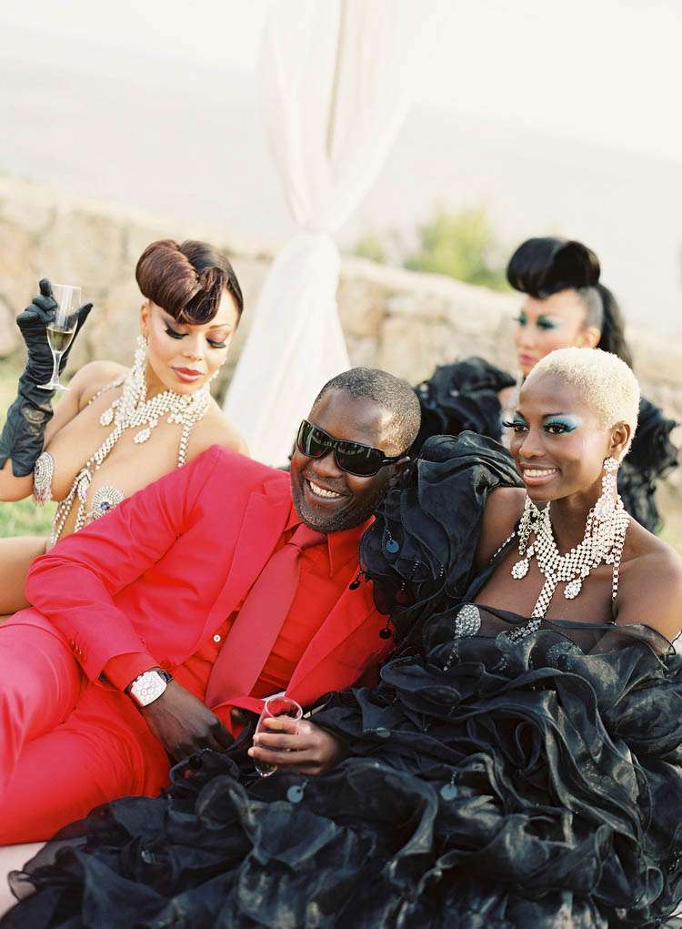 “A flamenco duo danced during dinner, bejewelled dancers from iconic Ibiza clubs Space and Pacha draped themselves across daybeds to greet the guests, danced and posed,” she continued. “US singer Barbara Tucker was flown in especially to sing the couple’s first dance where she stood on a wall in front of the sea. Watching the bride’s father dance with a topless model was priceless!”