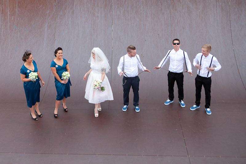 “Sam and his mates did some brief skate manoeuvres and everybody prayed nobody took a spill and injured themselves,” photographer Helen told me. “Then it was on to The Promethean for the ceremony and a cool party with groovy music. They walked down the aisle to ‘Rose of my Heart’ by Jonny Cash. The party went on until 5am!”