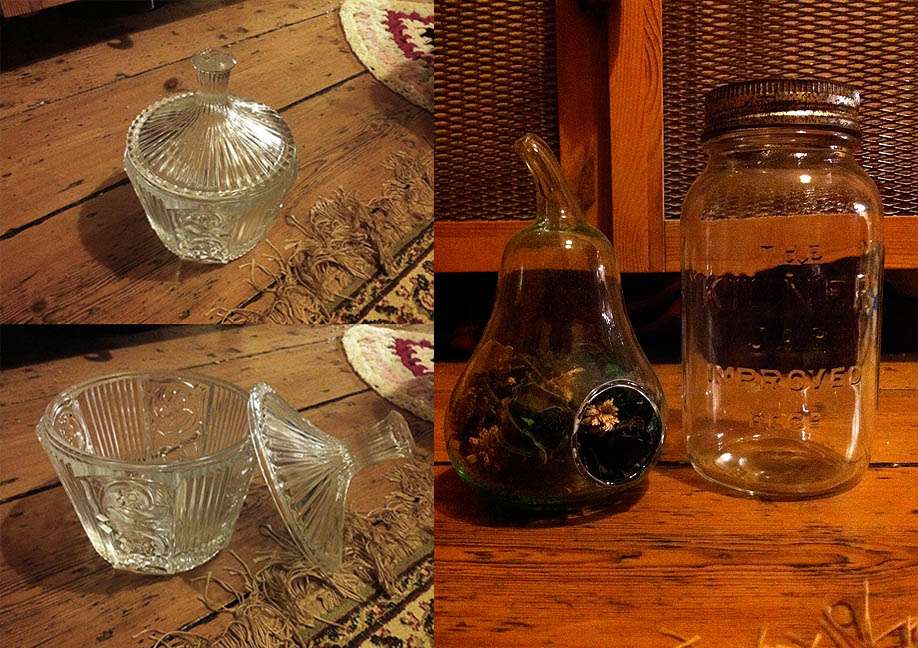 Glass container with lid, £3.99; pear (£1.50) and jar (£1.50)