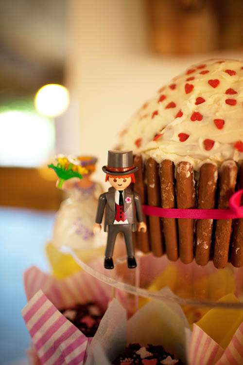 “The jam jars were really easy to decorate, I made them all different because I wanted a riot of colour and didn’t want anything to ‘match’,” Amy explained. “I painted flowers, polka dots, stripes etc in lots of different colours. I used acrylic paint and a varnish so they’re waterproof. Quite a few friends took them home at the end of the night, otherwise I would be overrun with them now! Making the favours was really easy too (if time consuming), we put some chocolates in some pink and purple netting (from John Lewis haberdashery) and tied it up with a ribbon.. it saved such a lot of money as favours can be really expensive!”