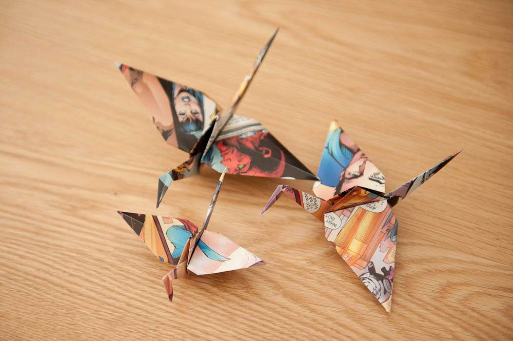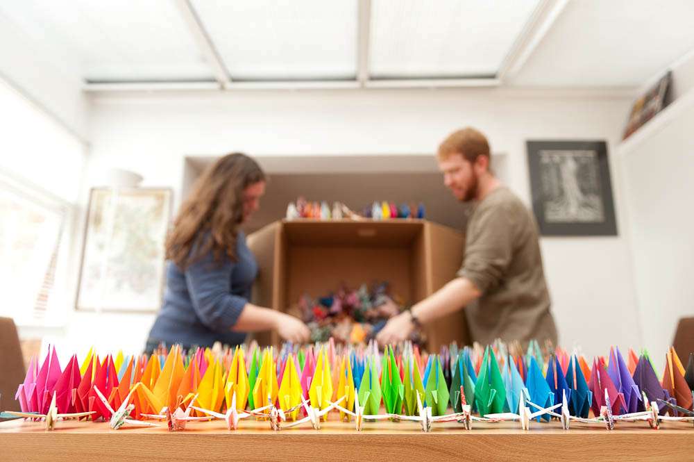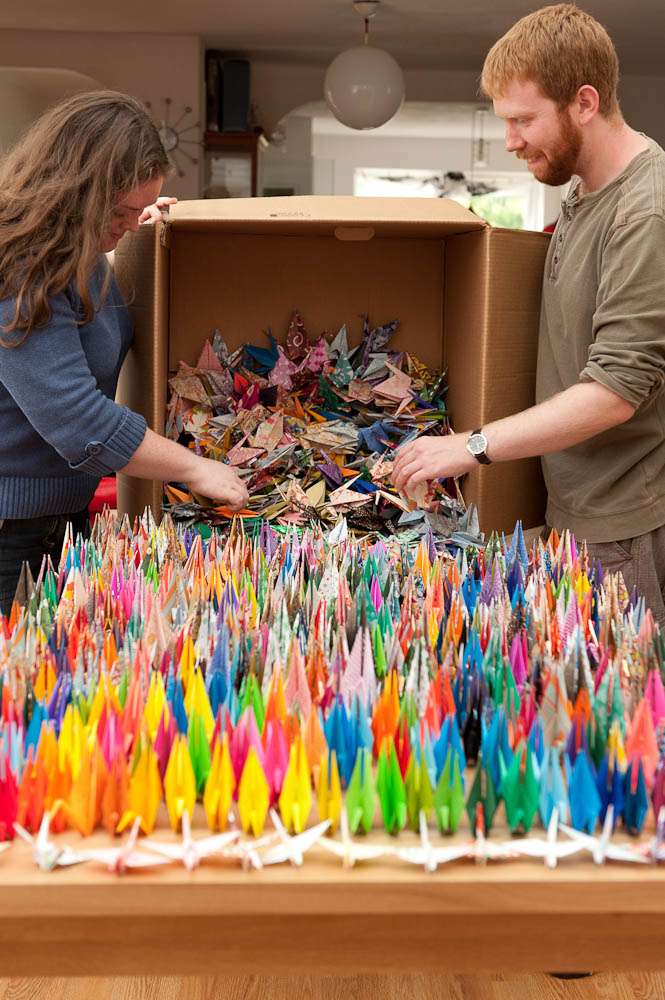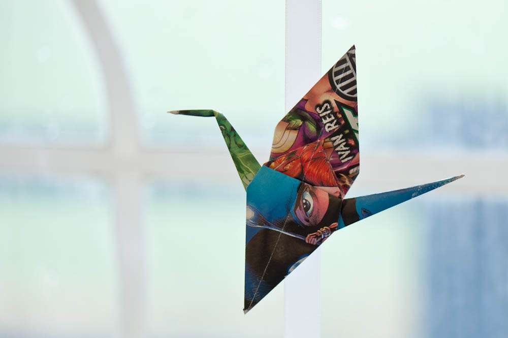 The couple spent months collecting different types of paper for all the origami – from comic book patterns (Terry is a big fan) to headed paper from their work! “It was really exciting getting the paper for the cranes,” Ceri continued. “Every time we got a new batch in we’d sit and fold one of every colour just to see what they looked like!”