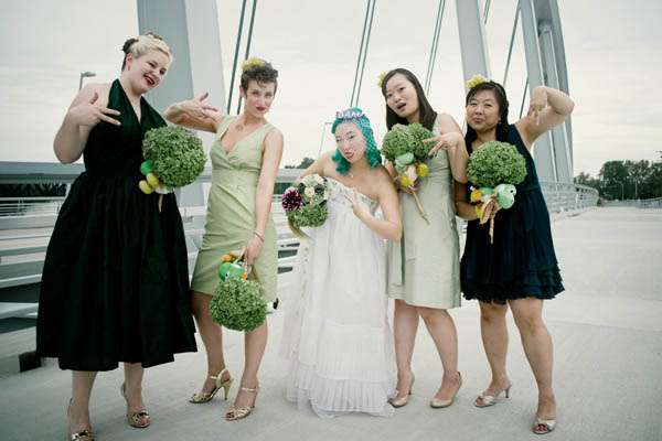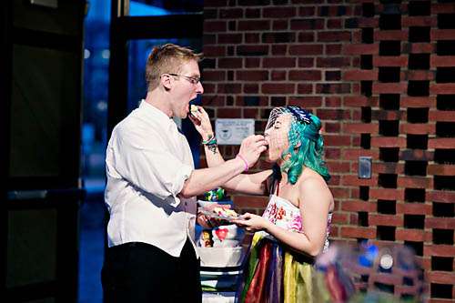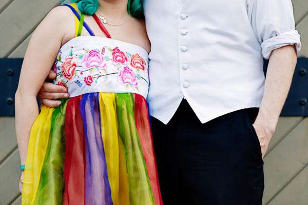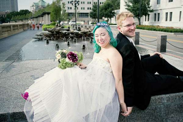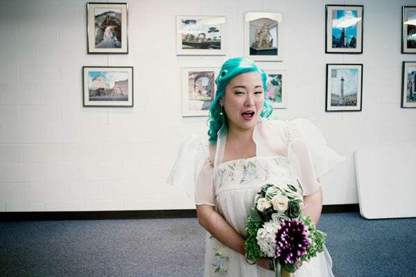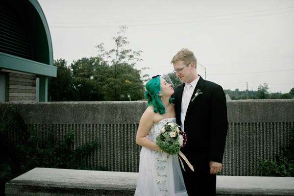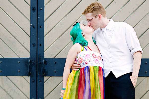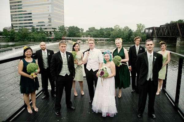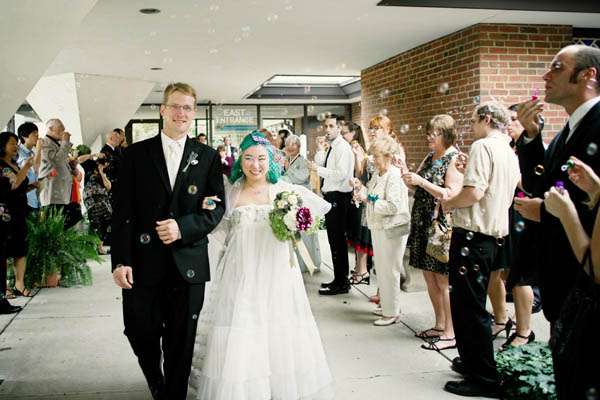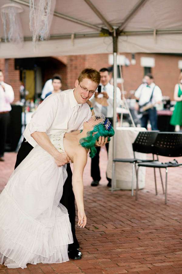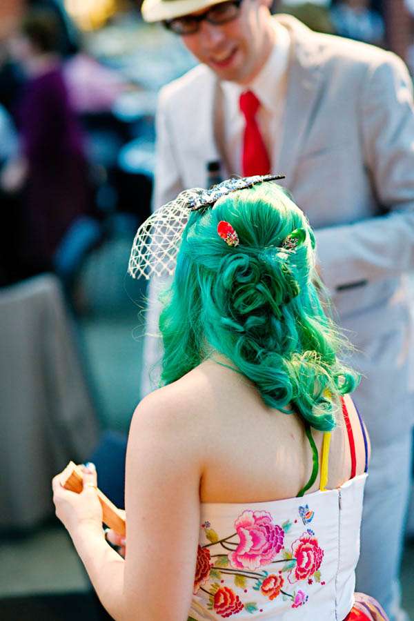 Esther & Andy’s incredible wedding was a little bit nerdy (Yoshi details, music from the Final Fantasy video games in their ceremony) and seriously cool (green haired bride who made her own dresses and rocked out to Sabotage at their reception…)!