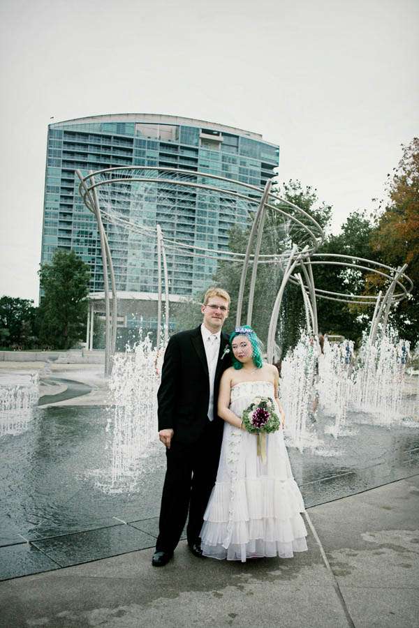 The North Bank Pavillion was the groom’s dream venue, “It is a public park but highly coveted for it’s gorgeous glass shelter house. We had to go one year and one day ahead of when we wanted our date to enter into a lottery to book it. They give all the people who are there numbers and put the balls into a bingo spinner then draw. Luckily we won on our second try.”