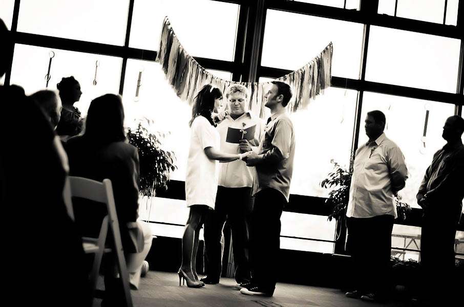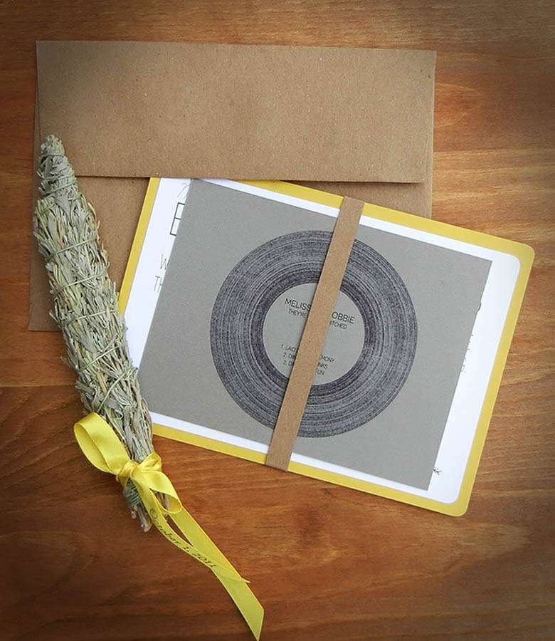 “We planned our wedding in nine months (and for half of this time Robbie was on the road with his band!) We designed the event from scratch and hand made almost everything. We chose a dear friend to marry us, and kept the ceremony simple, light-hearted and brief. We asked the bass player from the band Robbie works for to be our ‘M.C.,’ and created an easy-going reception that had the energy of a casual party while still emphasizing our love for art, design, and music.”