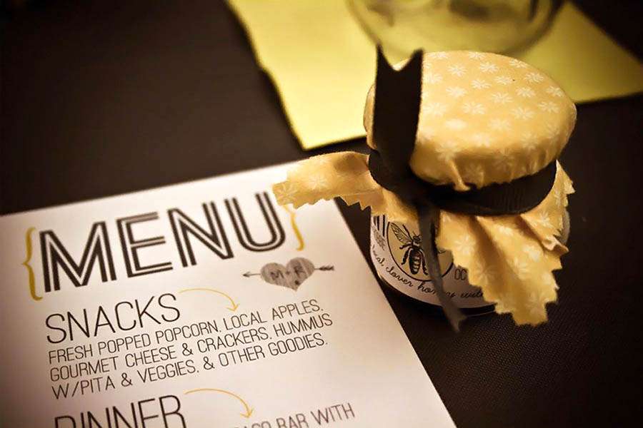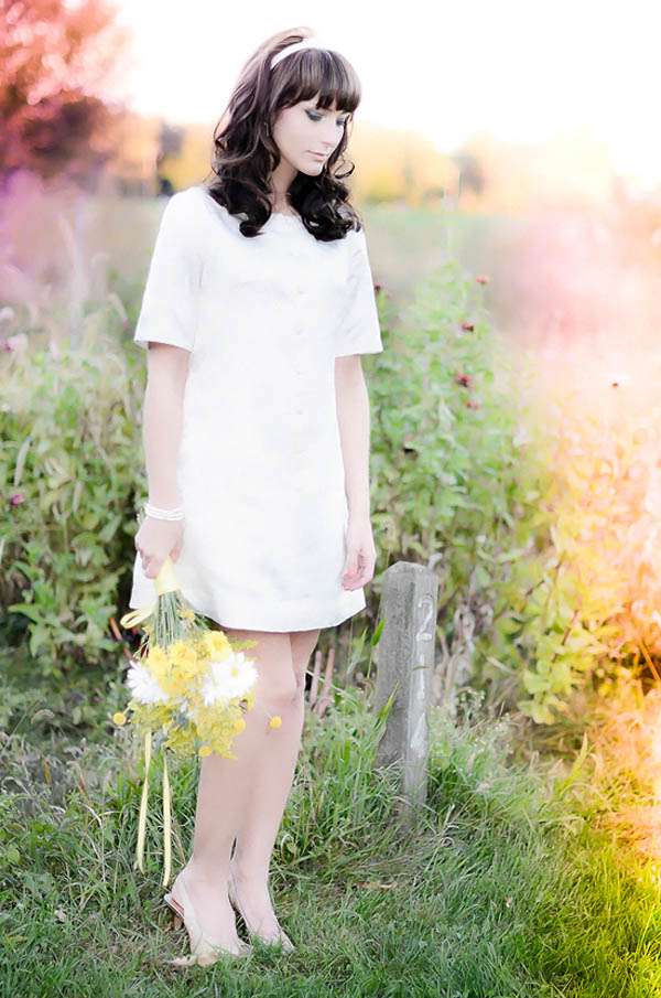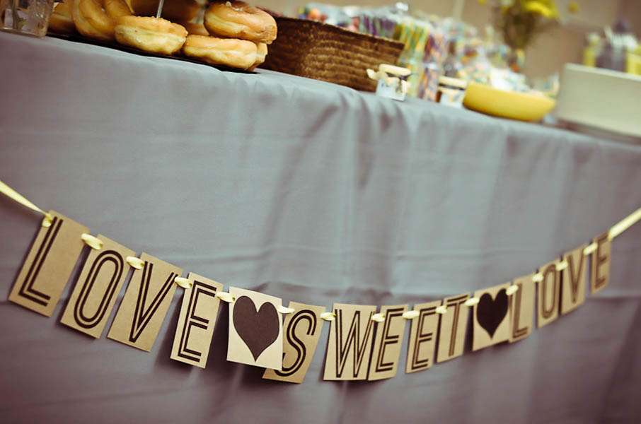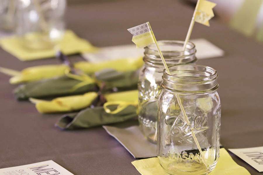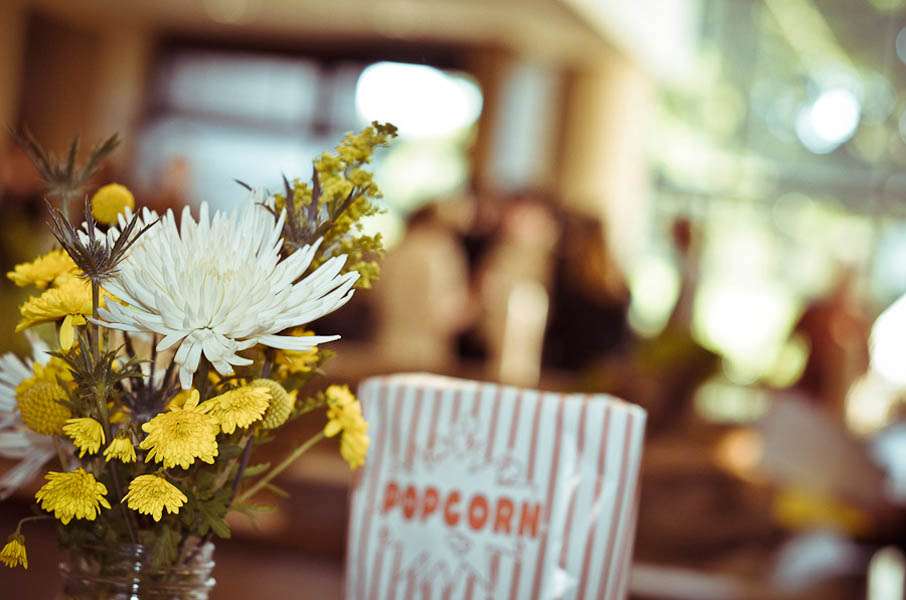 “The venue we chose is a nature center and community urban garden area, so we wanted to blend in elements of nature and eco-consciousness as well. We also wanted to incorporate our colors (yellow and gray) throughout the venue, stationery, flowers, and attire as much as possible. This was an awful lot to include in one wedding, but our mission was to do so in a way that resulted in a cohesive design and a unique event. It was quite a task, but we did it! When we needed inspiration, we did three things that we both love to do: listen to old records, visit vintage shops, and watch our favorite old movies (Hello ‘The Graduate’ and ‘Breakfast at Tiffany’s’!)”