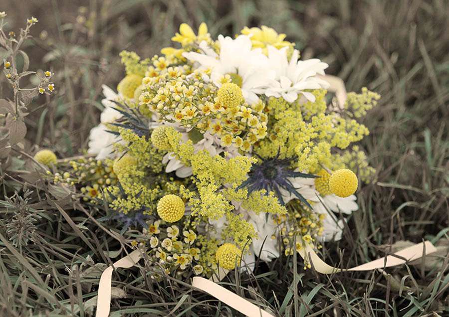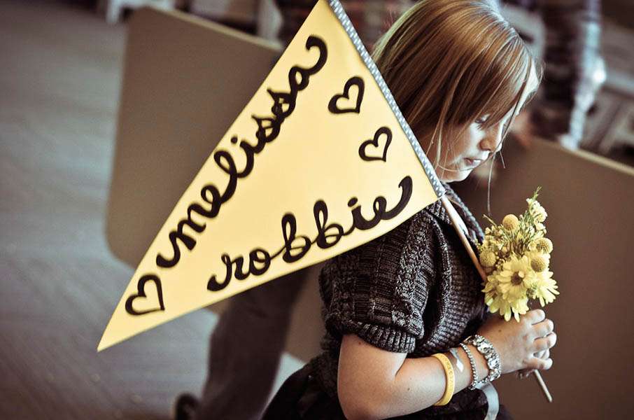 I love Melissa & Robbie’s wedding for so many reasons – her incredible shirt dress (which the bride, a fashion designer, made herself), the yellow and grey colour scheme, the cute recpetion details, their nephew and his ‘Melissa & Robbie’ flag – but most of all I love them because they shared this video with me. It’s a bit unconventional, but I’d encourage you to watch the video first. It was put together by the couple themselves from a collection of mobile phone/home camcorder clips filmed by their friends and it paints such a amazing picture of their wedding…