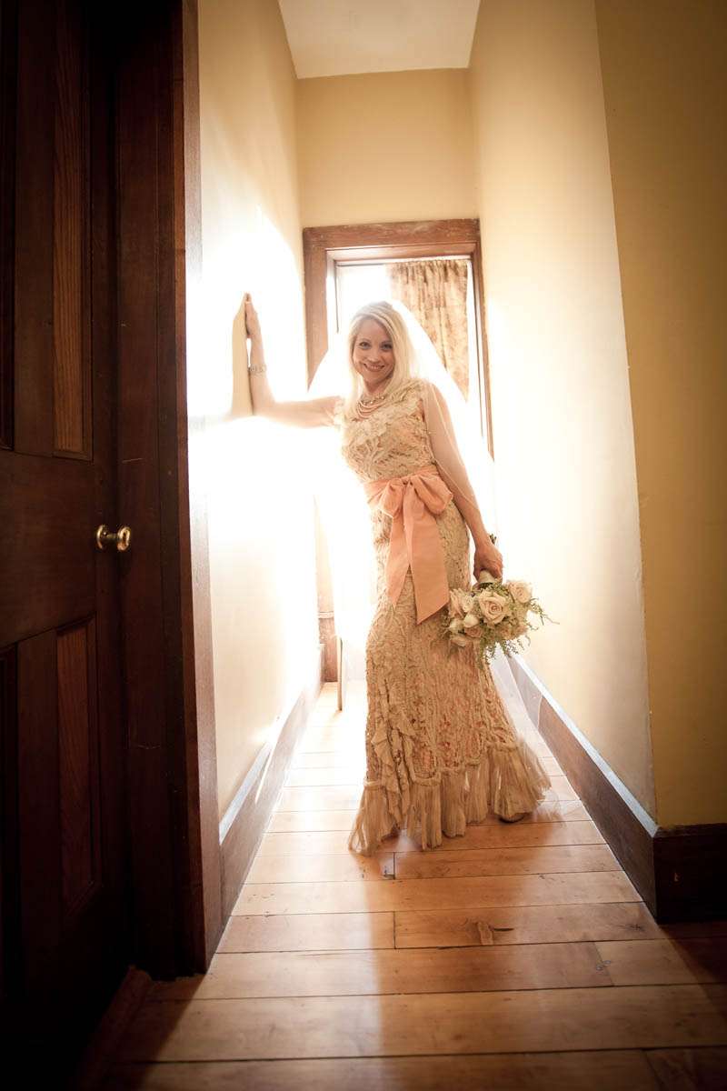 Bethany wore a vintage handmade lace dress that a friend found in a suitcase that she had bought at a garage sale! “When I tried it on, it fit like a glove and I knew it was meant to be,” she explained. “The only problem was that it was so old that it was pulling apart in places and no seamstress wanted to touch it because it was so fragile. I finally found a lovely woman named Peg Smith who had sewn the costumes for the Columbus Ohio Ballet for decades and was willing and able to hand pleat the tulle hem and hand mend the lace.”