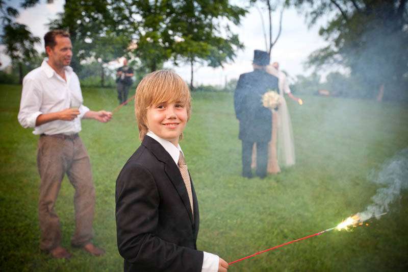 “There was something for all ages at this wedding. The children played vintage carnival games as their parents danced the night away to a live band. The night ended with a spectacular fireworks display that lighted up the sky over the farmhouse.”