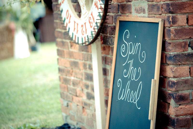 “The best thing about our theme was that it gave the kids something to do, ” Eric confirmed. “Our bestest kid-sitter Sarah brought a friend and helped the kids win ‘carnival coupons’ that would be drawn from a hat to win some prizes. All they had to do was spin an old carnival wheel I bought and get above a certain number, or put the softball in old milk jugs that were in the barn when we moved in, or put the bean bag in the corn toss, each ticket making them more eligible for a prize. Yes, we sugared them up with cotton candy and snow cones and a lot of candy. But then the kids had THEIR area and the parents had their area under the maple tree bar or on the dance floor, or on the big front porch.”