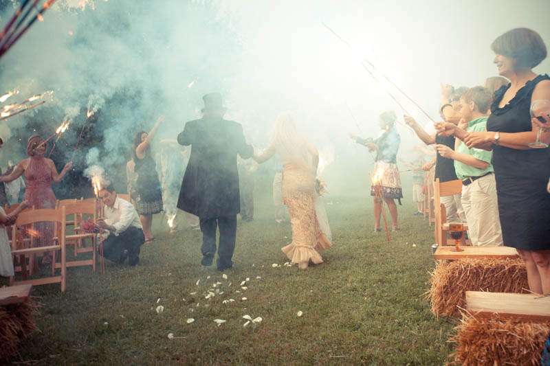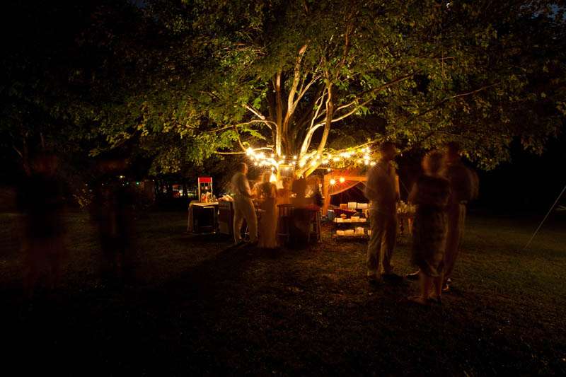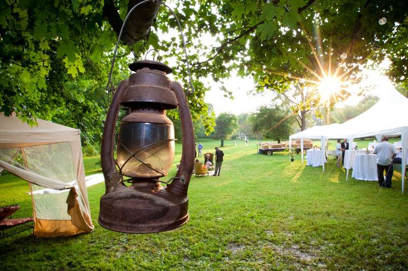 Even though their wedding looked spectacular, like most newlyweds there are a few thing they wish they could have done differently. “I wish we had a ferris wheel and I checked into hot air balloon rides,” the groom explained. “I bought fireworks — it was soooo much fun to just let them rip toward the end of the evening. My simple addition was antique lanterns that I bought while I travelled. I went from Oklahoma to Boston to Arizona antiquating before work and finding old railroad and barn lanterns to hang in the lights. I packed them gently and travel them like gold in the airplane overheads. Many times I had to explain to TSA that is was for a wedding and that they could test away for explosives. I already had my fireworks! However I think the simple lanterns, torches, and lights in the trees and tents presented a very easy way to light our 3 acres. An outdoor fire-pit added to the romance as well.”