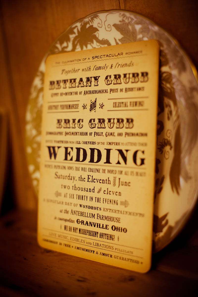 Bethany & Eric’s carnival-themed wedding was held at their home, Antebellum Farmhouse in Granville, Ohio. “The inspiration for our wedding really started with our pre-civil war home”, Bethany told me. “When Eric and I first saw our house with our realtor we both stood on the front porch with tears in our eyes. We had not even walked through the front door but we knew this was our home. Eric looked at me and said ‘we could be married here.’ He then carried me across the threshold. Sounds like a fairy tale…. But so real.”