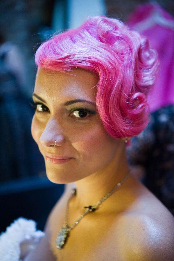 “We are both crafty, artistic and creative,” the pink haired bride told me. “We wanted a mix of romantic gothic, neo-Victorian, vintage and steampunk for our wedding. We really wanted to make it our own and original with still trying to keep a little tradition for our families. We decided we just wanted hints of each. That’s why we decided to DIY as much as we could.”