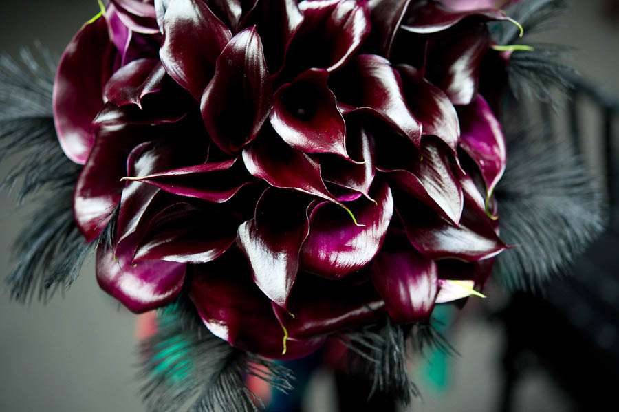 The couple also made a huge effort with their outfits, DIYing and accessorising with vintage and steampunk details. “George and his groomsmen had time piece lapels were made by us using mini metal gears, chains, a mini key & a watch face. We had the florist attach the black calla lillies to the pieces we made.”