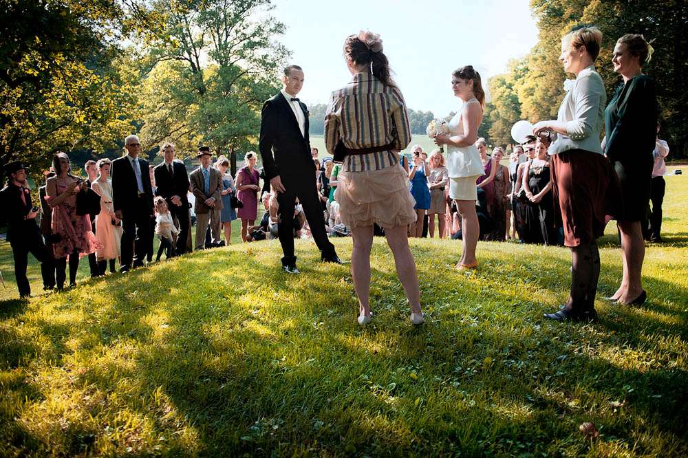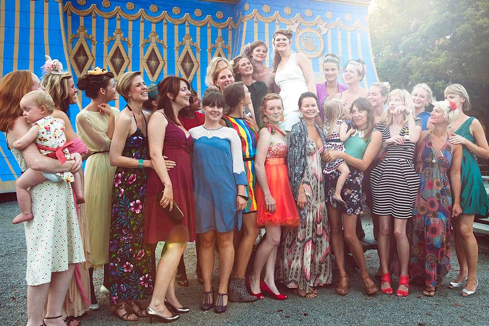“My sister married us, something we decided to keep from the other guests,” Frida told me. “Despite a short line about guests being welcome to add their own touches to their outfits, we were took by surprise when everyone turned up with personal touches to match our wedding theme. Even the most unlikely of our family members really took to the task, which was ace. My personal favourite, the groom’s Uncle who appeared in a top hat, weilding a riding crop! We also had the pleasure of an assortment of fine shoes, hats and sparkles.”