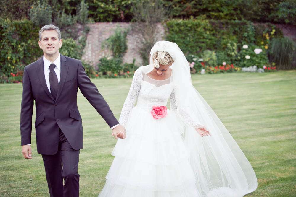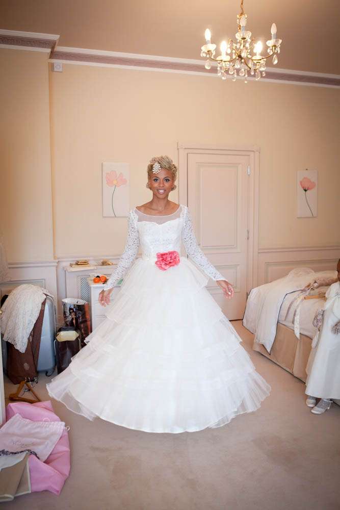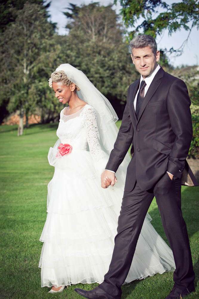 The bride wore a stunner of a dress, a genuine 1950s gown, “Dawn was like a living doll in her 50s lace tiered vintage gown, and Terry was the epitome of a cool in his three piece by Terence Trout, any photographer’s dream! Their ceremony was held in a little chapel in the chateau grounds and as they had been together for 10 years before tying the knot, the mood was warm and relaxed. After some very playful (in)formal shots, everybody sat down to bubbly and cakes, and a brilliant rendition of ‘Isn’t She Lovely’ by Dawn’s Dad.”