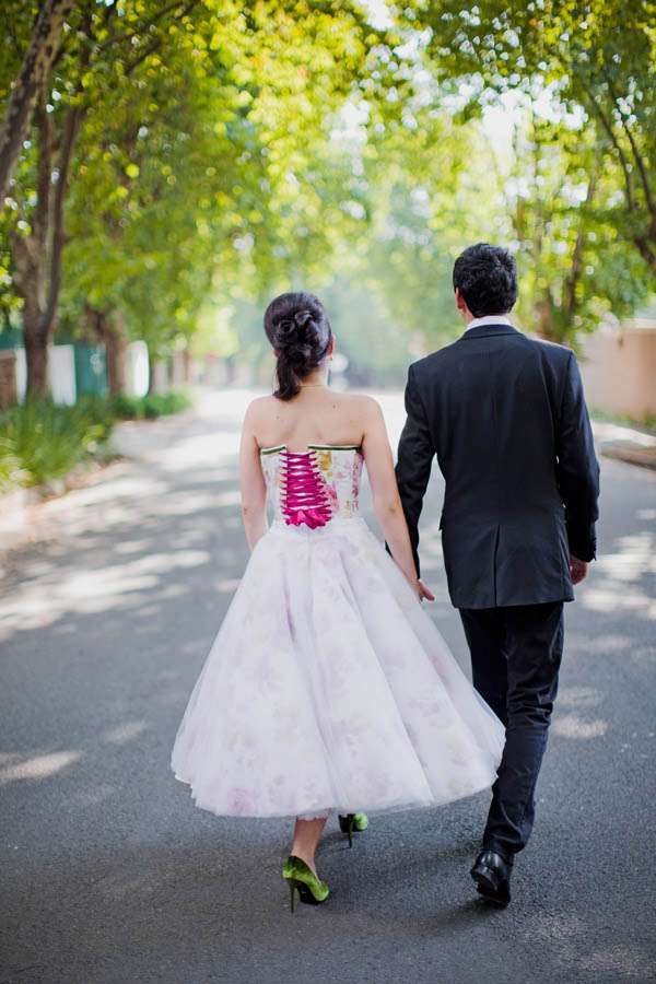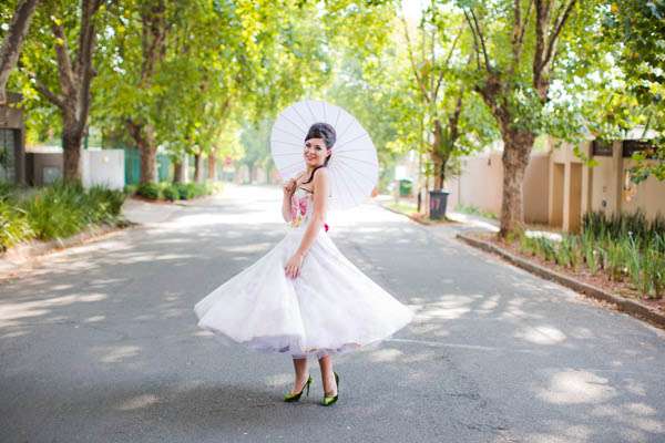 “My final wedding for last year was an instant favourite,” wedding photographer Rensche Mari wrote. “As soon as I walked into Manilla’s home I knew it was going to be one of those weddings where I was just going to be wowed the whole way. The wedding had a carnival feel to it, the bridesmaids all dressed in different shades of green and each outfit was unique. Manilla’s whole look was so refreshing and just a lot of fun, her dressed popped with the beautiful colours and her dress even had the same green velvet as her shoes.”