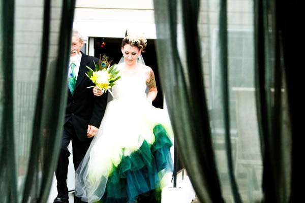 Wendy & Jesse’s homemade wedding had a peacock theme. The day was held in their own house and alongside Brittany of Bshane Events, they made what they could themselves to make their wedding their own.