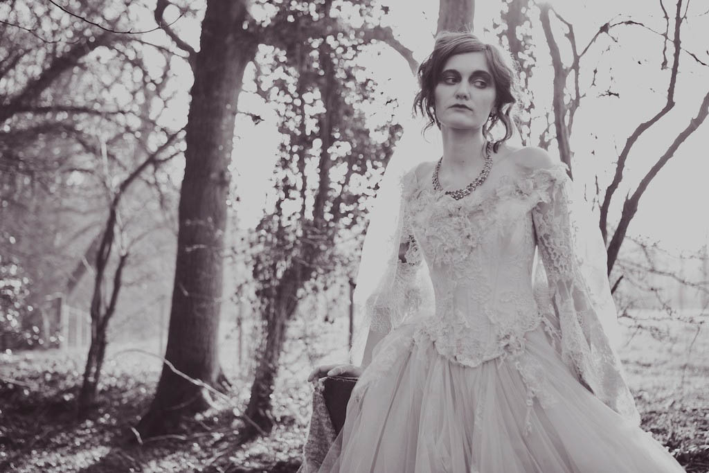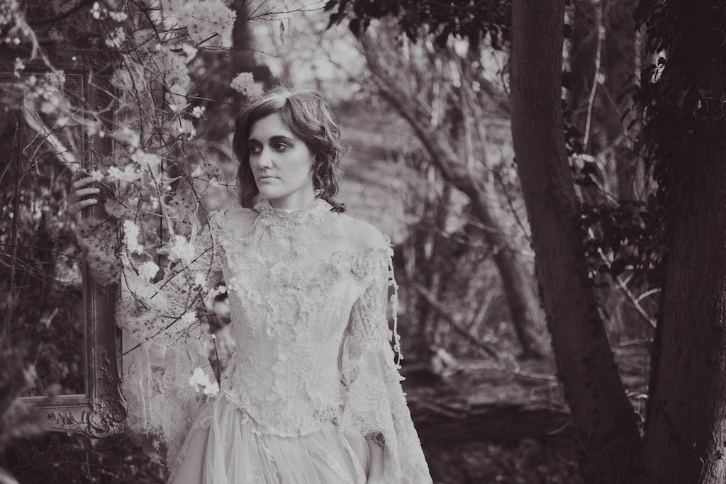 “The shoot itself was wonderful. Sitting in a nook not-so deep in the woods of the Farm, I immediately felt like we’d been transported somewhere else, somewhen else. I felt so detached from my real life and standing there alone in shot, I really thought I was alone, just like I was supposed to. It was odd – I don’t want to say that I felt abandoned but I certainly felt like I was in some kind of bubble, like everything about the costume and the set and the natural surroundings all helped to pertain to this idea of Miss Havisham’s life literally stopping and freezing, and becoming a snapshot. It was creepy, and ethereal, and a little sad. It was wonderful.”