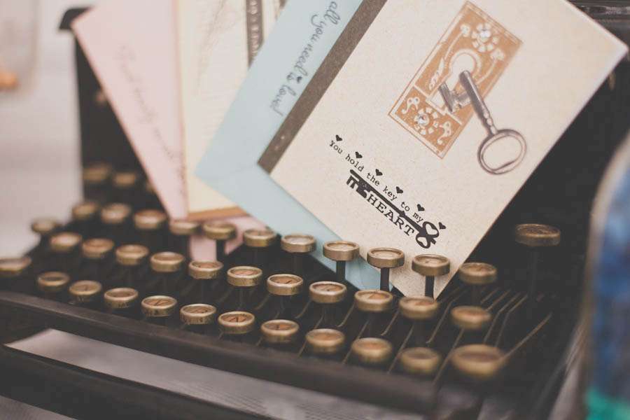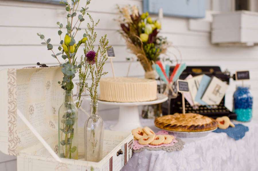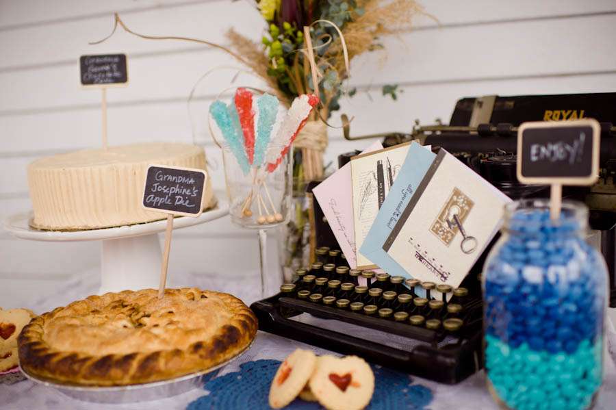 “We arrived to the Inn at the Brome Howard early in the morning, which is a gorgeous bed and breakfast in St. Mary’s County, MD. It’s filled with antique treasures and historic gems; we even found the cutest old typewriter which was perfect for the theme. Upon arrival, we immediately felt at home, and began unpacking our clothes, mason jars, candies, homemade pies, and paintbrushes. I handmade all of the save-the-dates and wedding invitations.”
