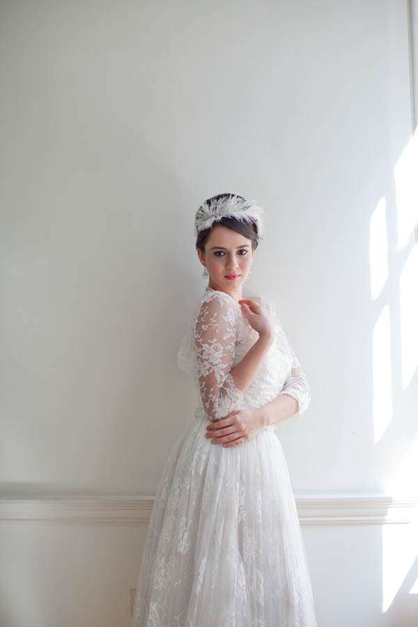 “I took a lot of inspiration from the stationery designed by Delectable Ink and the beautiful bouquet ideas of The Vintage Floral Design Co.” she continued. Andri coordinated the styling on the day, and thought up the ingenious ribbon dessert table. Carla dolled up our model Kris, with 2 gorgeous dresses from Luella’s Boudoir, including an exclusive new 50s-inspired design and some picture perfect peep toes from Emmy. In the end I think we all managed to showcase what we think a 50s London wedding should have, something accessible for brides but also a bit more exciting than they might have thought up themselves.”