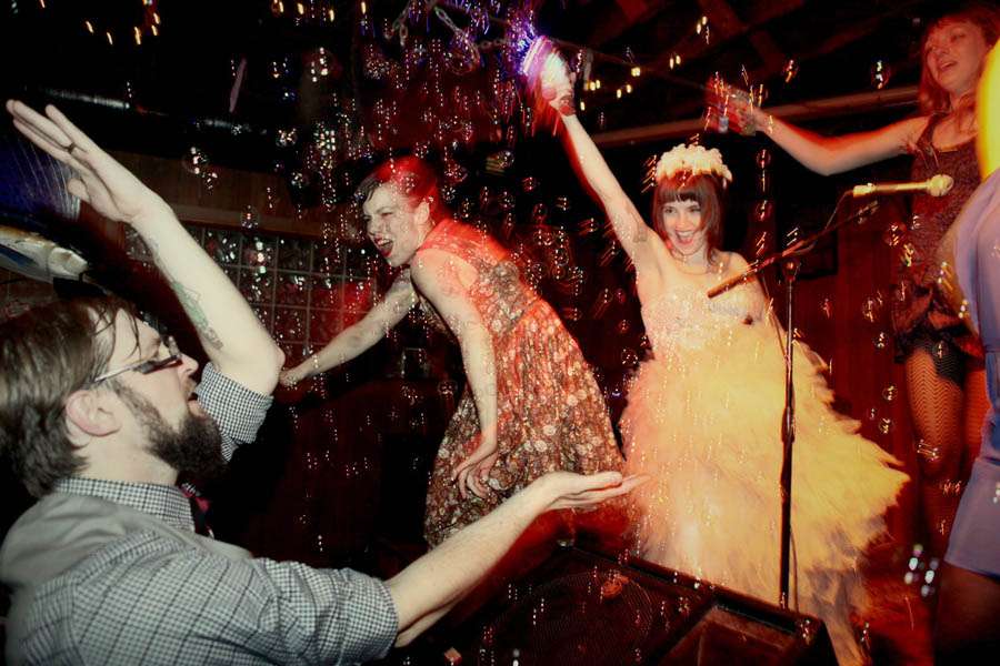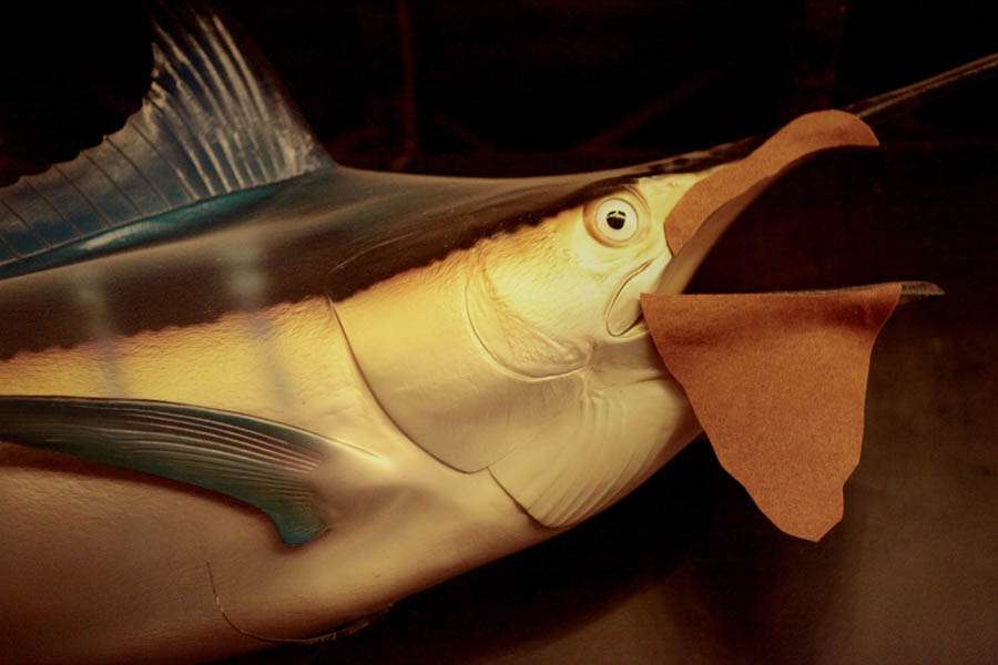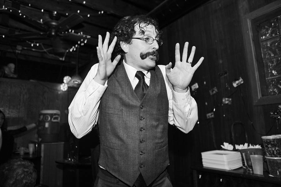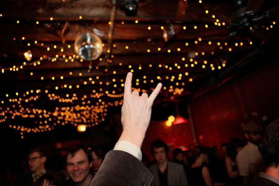 “If we had to have a theme it would have been BATMAN FISH-BEARD! All the wall decorations were cassette tapes. Dustin had a big box of voice demo tapes from the 90s that he had somehow acquired. We decorated and hung them on the walls of The Hideout. When you pull out a tape’s guts it looks like streamers. Also we put felt beards on all the taxidermy fish at that were on the walls… As you do.”