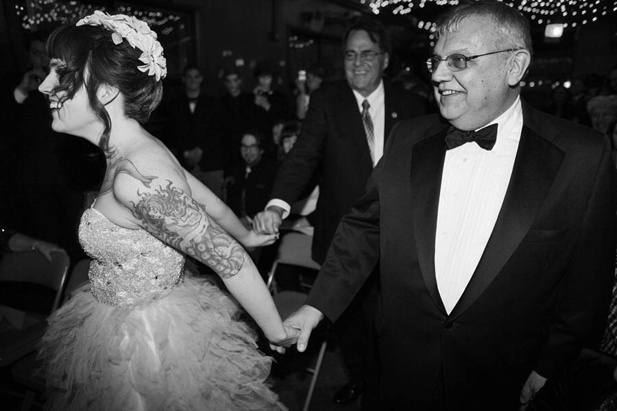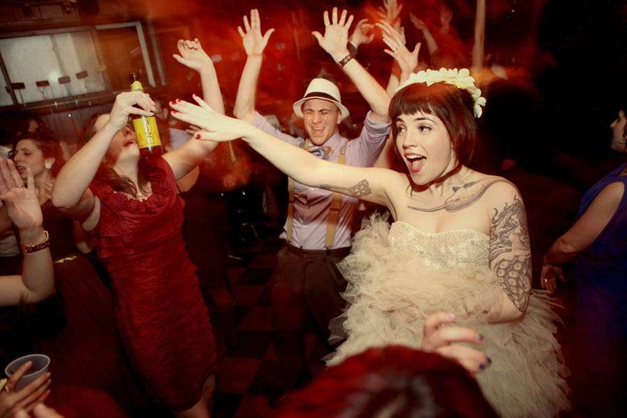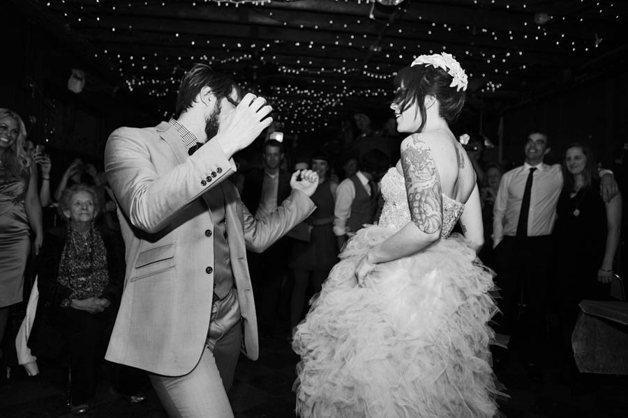So why did I want to mention that again today? Well Dustin & Morgan’s wedding is pretty much the epitome of Rock n Roll awesome. It wasn’t detail-heavy or wedding blog pretty – it was just a seriously awesome party! It celebrated their love in their way and they were 100% unapologetic about that fact… And you know what? It’s one of my favourite weddings that’s I’ve featured in a long time! So, forget about the bunting, the mason jars or the designer frock and focus on what’s important – the LOVE (and in this case, the dancing)…