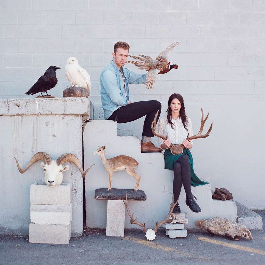 For their engagement shoot, Mckenzie & Alex wanted something unique. They wanted something that screamed ‘them’ and showed their quirky side. They came up with the taxidermy concept after visiting a museum and falling in love with how they looked and the artistry behind each one.
