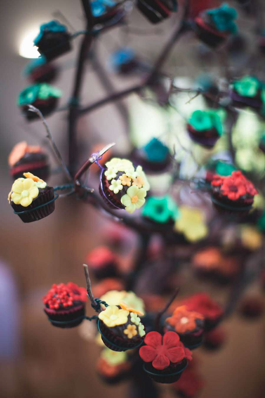 “I had a dream during the planning process which featured a tree covered in cupcakes that looked just like blossom flowers. I just knew I had to recreate it somehow. I got in touch with my wonderful cake making friend, Sam, and she helped me bring the vision to reality, only better! She coloured all chocolate in all the colours of the wedding, and added them to the tops of all the little cupcakes. A true blossom tree. They were delicious too.”
