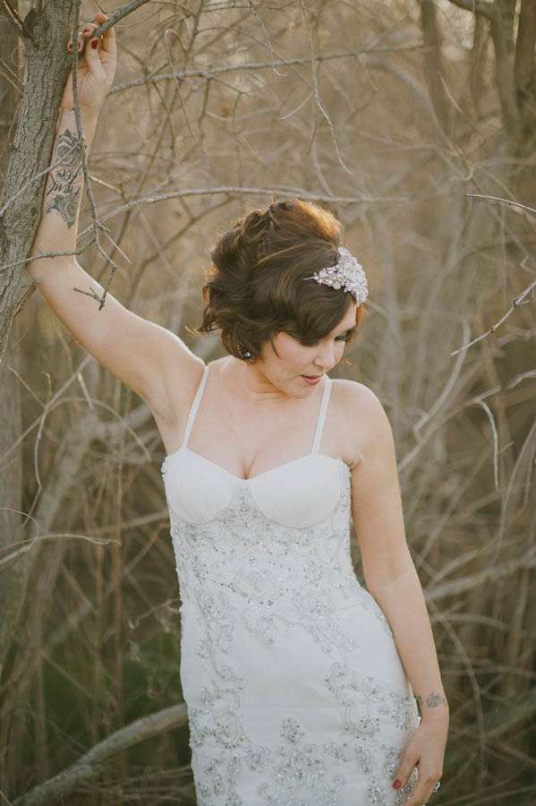 “Their wedding consultant, Kate Miller of Kate Miller Events, was on hand to help with the styling of the shoot. Shannon Cosgrove-Rivas of Flourish recreated Jillian’s wedding bouquet for her using the brooches and pearls from her original bouquet and paired them with wooden and silk flowers to create the bouquet Jillian used for the shoot. Jillian’s hair and makeup was done by the incredible team at Hello Glam.”