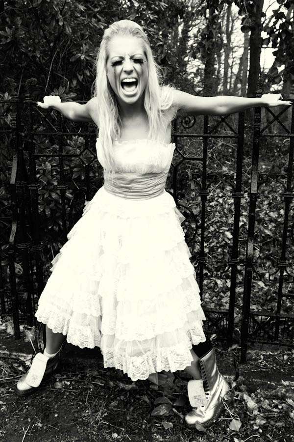 London wedding photographer Ann Charlotte set up this morning’s editorial shoot in order to showcase an idea she’d had running through her head for a while. “I love fairytales and this fictional fairytale wedding/fashion shoot was inspired by Alice in Wonderland and the idea of a runaway bride. I wanted to shoot a misunderstood bride, running away from her wedding in tears. After some soul searching she eventually came back home to a waiting husband-to-be and a reconciliation.”