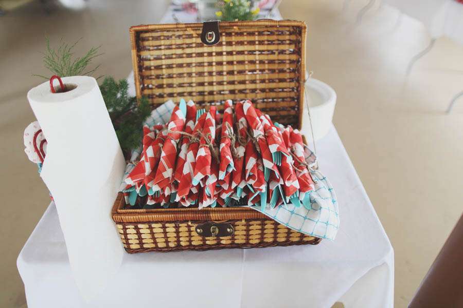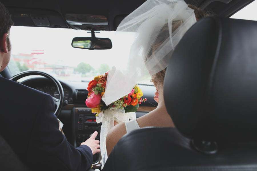 “We wanted to be comfortable, and we wanted our guest to be comfortable too”, wrote Elaine. “We tried to do that while still honoring the importance of the day, and the formal nature of the ceremony being performed in the Greek Church. Our aim was to create a picnic-feel, but with tables and chairs. And we weren’t afraid to cut the traditional wedding elements like tossing the bouquet or renting a limo. Instead, we held a very serious dance contest complete with engraved trophies. And, we got a free car wash on the way to the reception!”